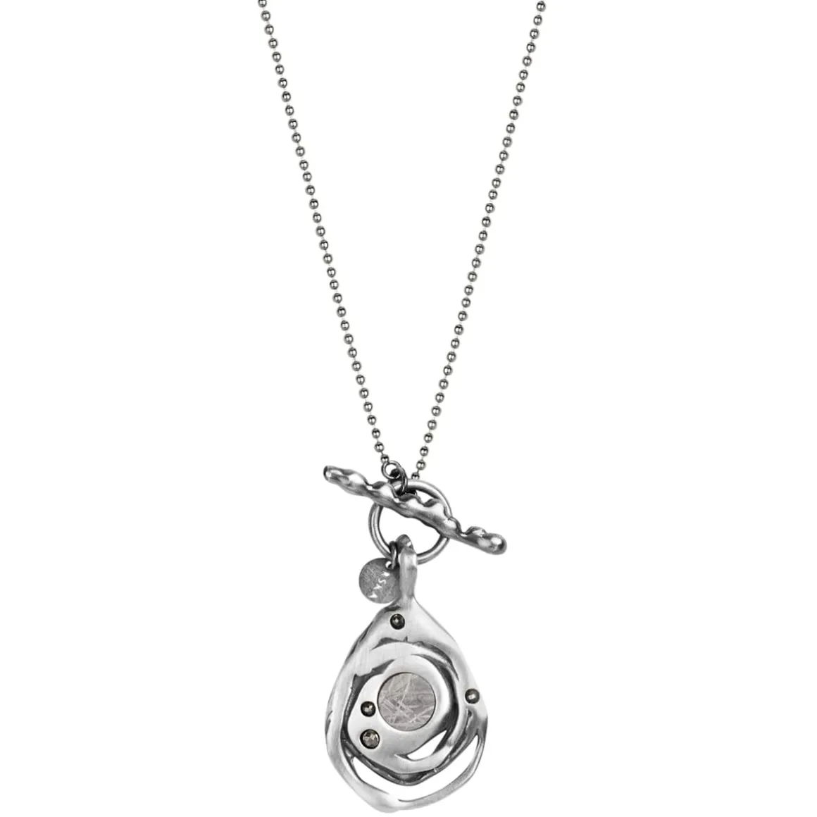 Długi, srebrny naszyjnik z meteorytem z kolekcji Meteoros