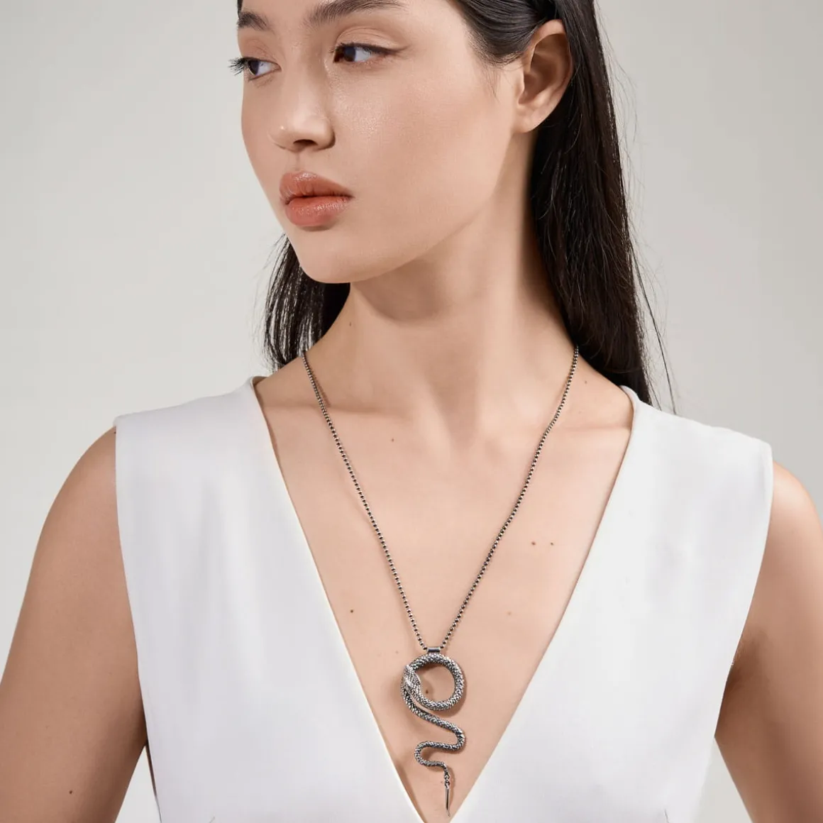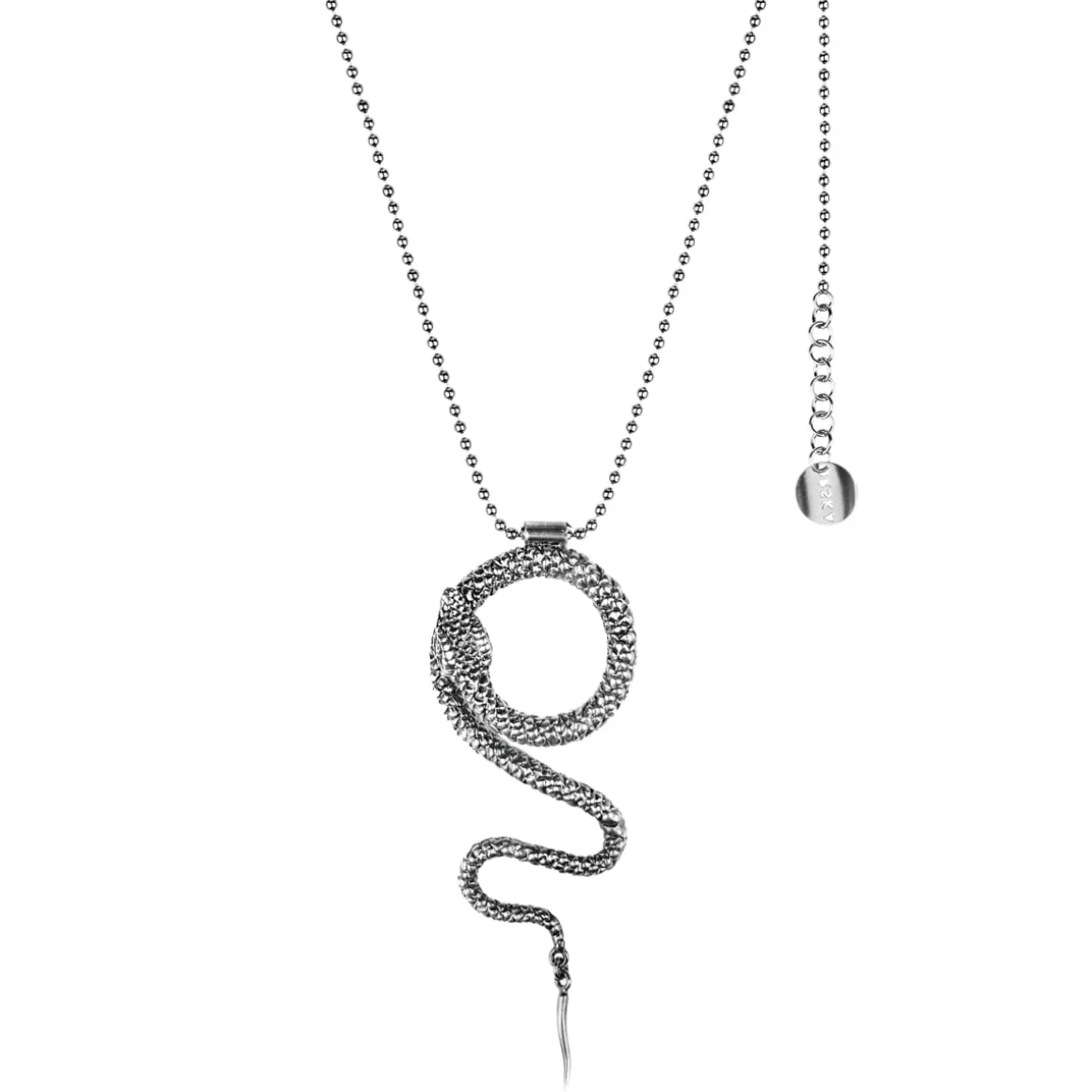 Naszyjnik został wykonany ręcznie ze srebra. Jego główną ozdobą jest zawieszka w kształcie węża – z wiernie odwzorowaną strukturą gęstych łusek. Końcówkę wężowego ogona podwieszono za pomocą drobnego ogniwa, dzięki czemu jest ruchoma. Wąż ułożony został w artystycznie zwiniętą pozę i zawieszony na łańcuszku o kulkowym splocie. Naszyjnik wykończono podwieszonym logo ORSKA oraz wygodnym zapięciem na karabińczyk. Ogniwa na łańcuszku umożliwiają zapięcie naszyjnika na dwóch wysokościach. Jasne srebro dodatkowo poddano oksydowaniu, które nadało mu ciekawy, grafitowy kolor.