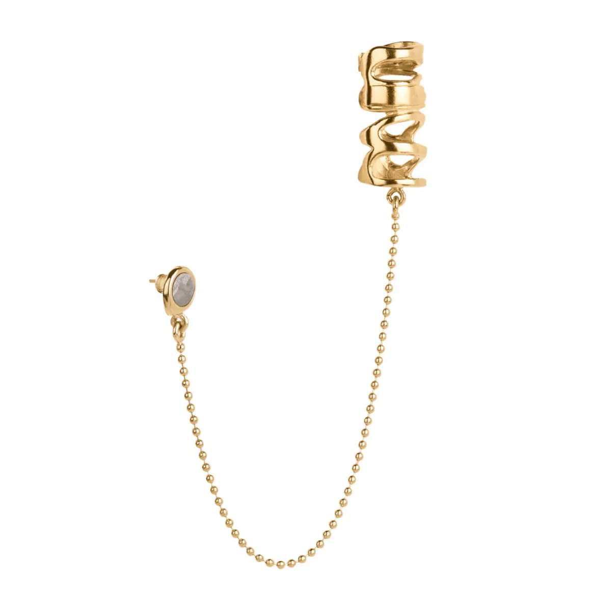 Nausznica z kolczykiem na sztyft z kolekcji Meteoros została wykonana ręcznie w pracowni ORSKA z pozłacanego mosiądzu. Nausznica składa się z kilku subtelnych obręczy, które efektownie oplatają ucho, tworząc dynamiczną, spiralną formę. Kolczyk na sztyft, połączony z nausznicą łańcuszkiem o kulkowym splocie, posiada oczko z meteorytu Aletai, które dodaje całości gwiezdnego blasku. Czy wiesz, że meteoryt Aletai był jednym z największych, jakie do tej pory spadły na naszą Planetę? Pod względem wielkości klasyfikuje się na piątym miejscu. Ta ogromna cząstka Kosmosu ma unikalny skład – Aletai powstał dzięki połączeniu żelaza i niklu z dodatkami rzadkich pierwiastków, takich jak złoto, miedź i iryd. Meteoryty, od wieków cenione za swoje magiczne właściwości, mają mieć zdolności ochronne i energetyczne. Wykorzystanie Aletai w nausznicy z kolekcji Meteoros nadaje jej kosmicznego uroku, a Tobie pozwali poczuć się bliżej wszechświata.