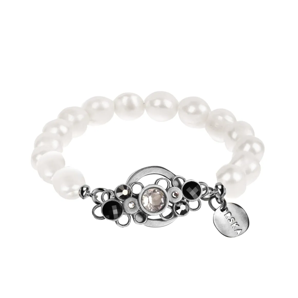 Kolekcja Soda to subtelny flirt klasyki z nowoczesnością. Tradycyjna elegancja pereł została przełamana współczesnymi kryształami, osadzonymi w srebrnych elementach wykonanych w technologii druku 3D. Kremowa biel pereł słodkowodnych, rozświetlona kryształami, wyraźnie kontrastuje z grafitową szarością metalu. Artystyczna bransoletka została wykonana ręcznie. Efektowny sznur pereł wieńczy zapięcie na bogato zdobiony skobelek. Oryginalna biżuteria będzie idealną ozdobą dla wielbicieli nieoczywistych rozwiązań, spragnionych unikalnych doznań estetycznych.