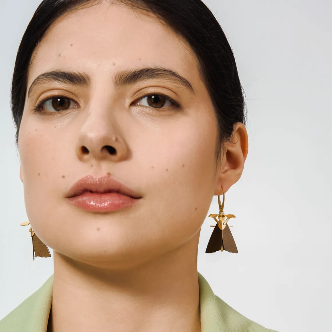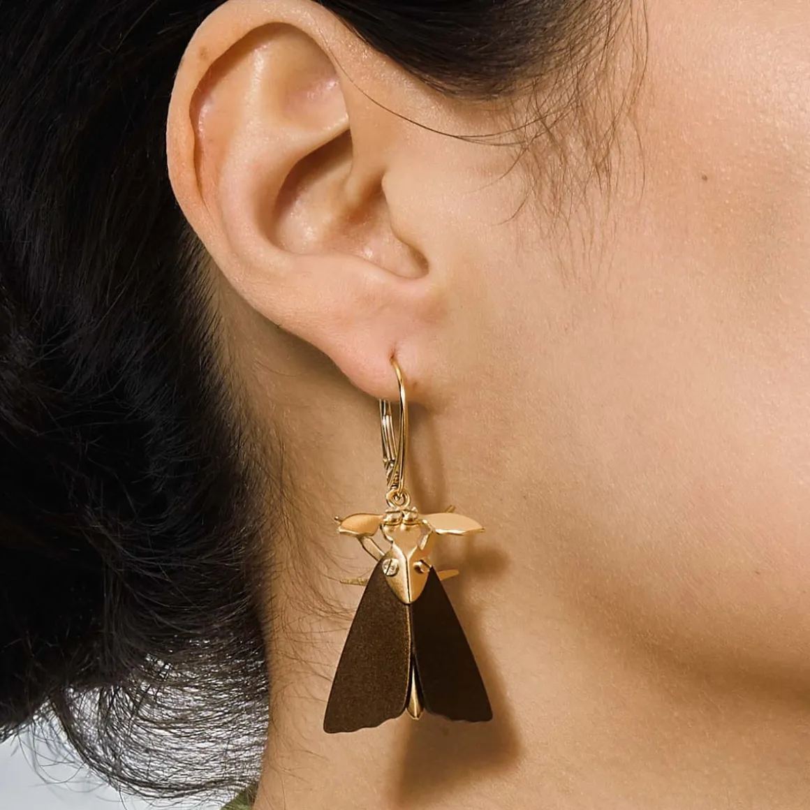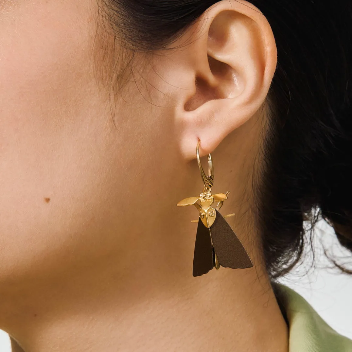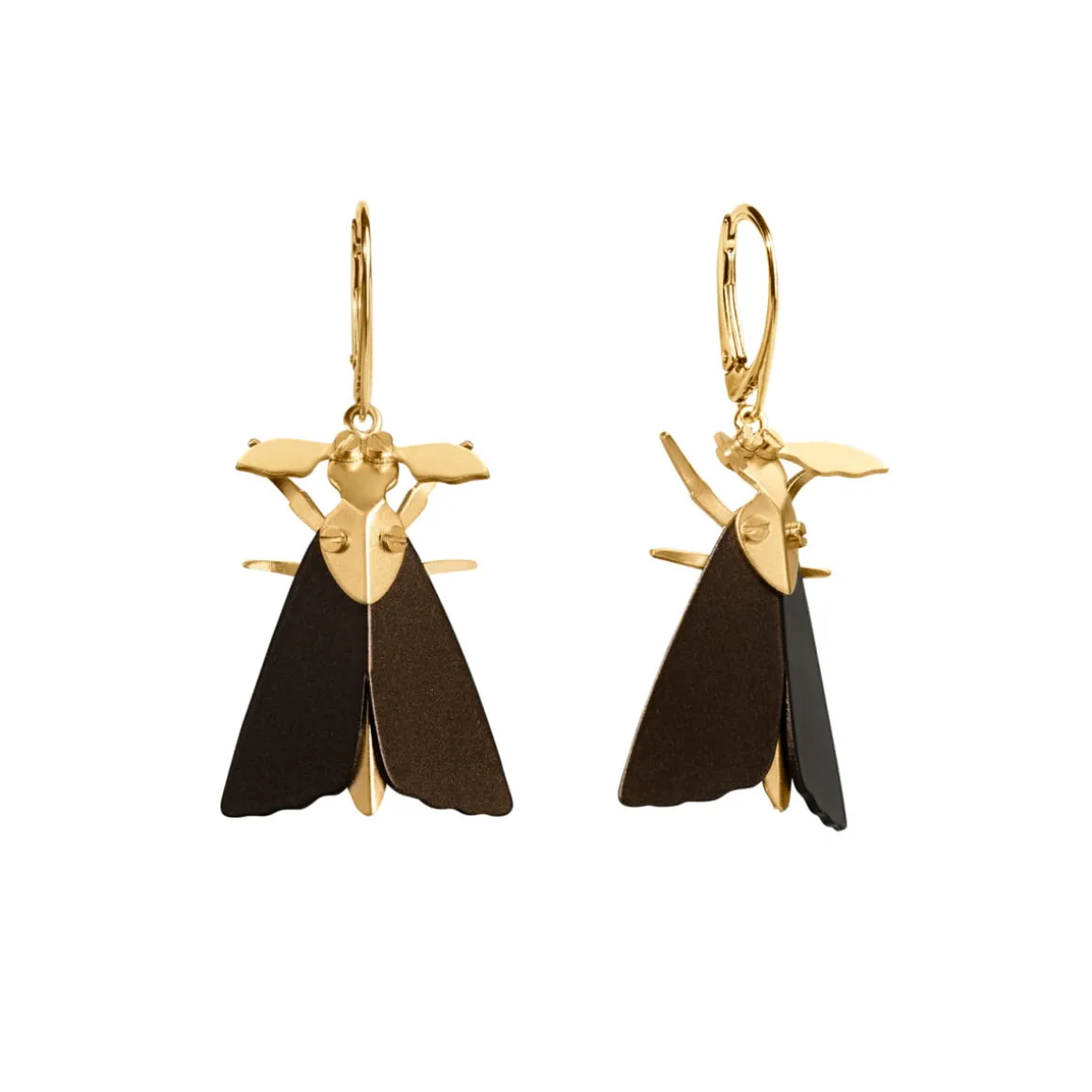 Kolczyki ćmy zostały wykonane ręcznie w pracowni ORSKA. Skrzydła owadów są pomalowane na ciepły brązowy kolor. Odnóża oraz głowę wykonano z pozłoconych elementów, które mienią się w blasku świateł. Ciało owada zostało skonstruowane przy pomocy miniaturowych śrubek, które jednocześnie pełnią funkcję oczu oraz ozdobnych elementów u nasady skrzydeł. Ćmy są zawieszone na biglach angielskich, co sprawia, że subtelnie poruszają się przy każdym kroku, jakby naprawdę próbowały wzbić się do światła. W kolekcji oprócz kolczyków z ćmami można również znaleźć ozdobny pin w tym samym wzorze.