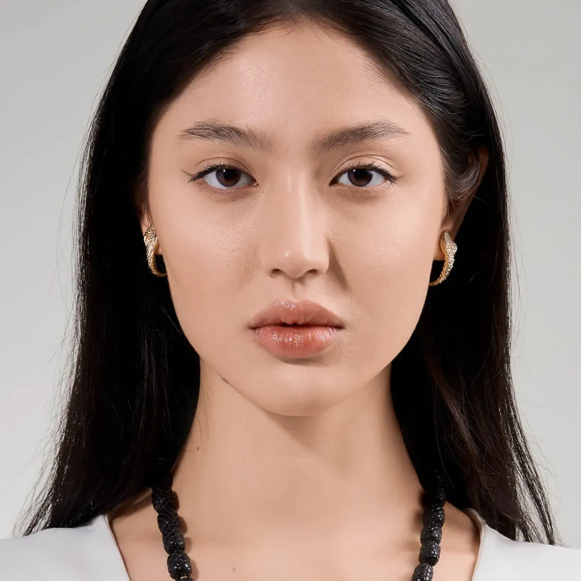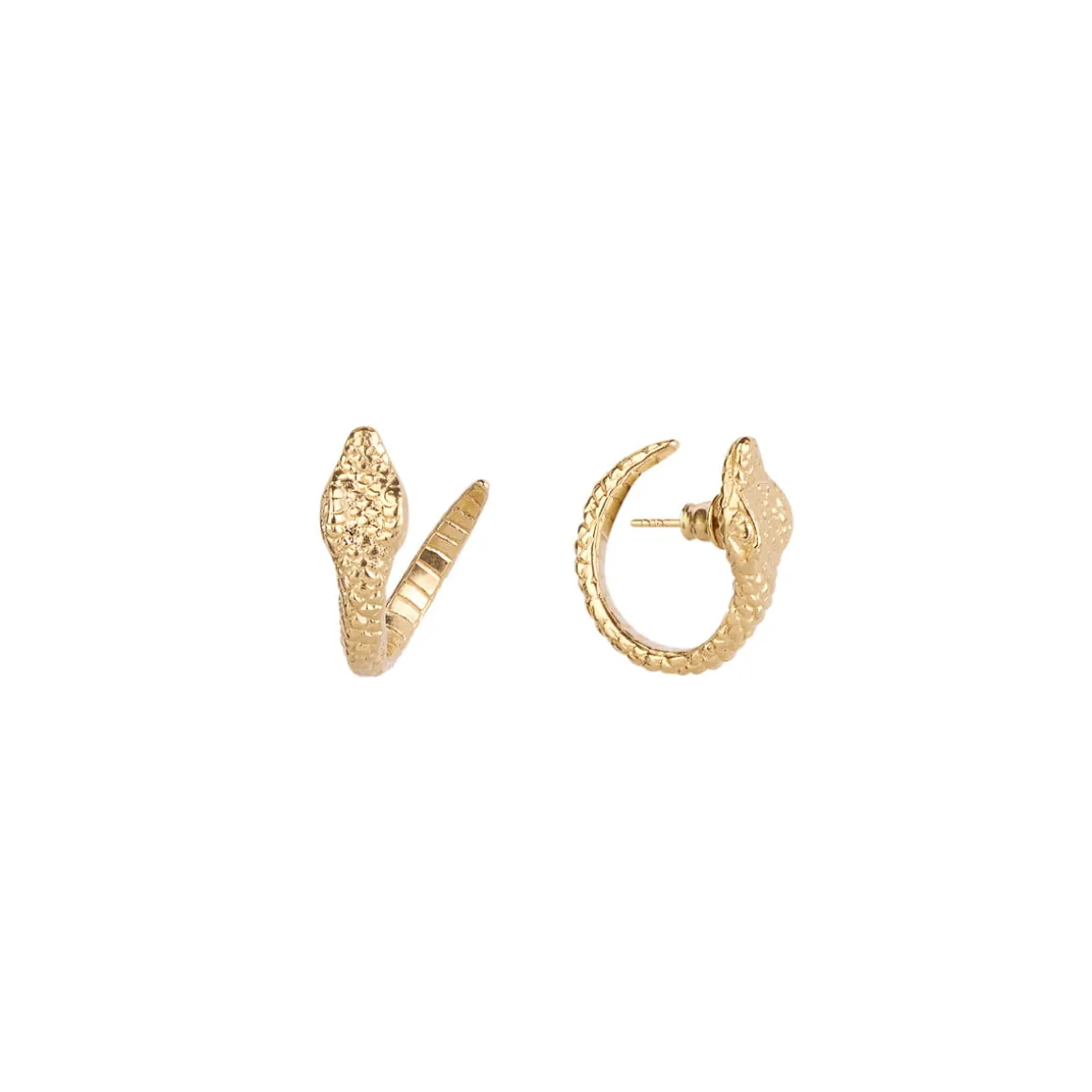 Kolczyki zostały wykonane ręcznie w pracowni ORSKA z pozłacanego mosiądzu. Kolczyki mają klasyczną formę koła, ale dzięki sięgnięciu do pozytywnej balijskiej symboliki, wyróżniają się oryginalną powierzchnią. Jubilerzy precyzyjnie odwzorowali kształt węża i gęstą strukturę wężowych łusek, a następnie nadali mu zaokrągloną formę, aby delikatnie zawijał się pod uchem. Dzięki złoceniu okrągłe kolczyki mają głęboki i trwały kolor. Wężowy wzór zdobi kolczyki zarówno od zewnątrz, jak i od wewnątrz, dzięki czemu minimalistyczne formy przyciągają uwagę i kradną komplementy. Kolczyki zapinane są na sztyft wykonany z pozłacanego srebra.