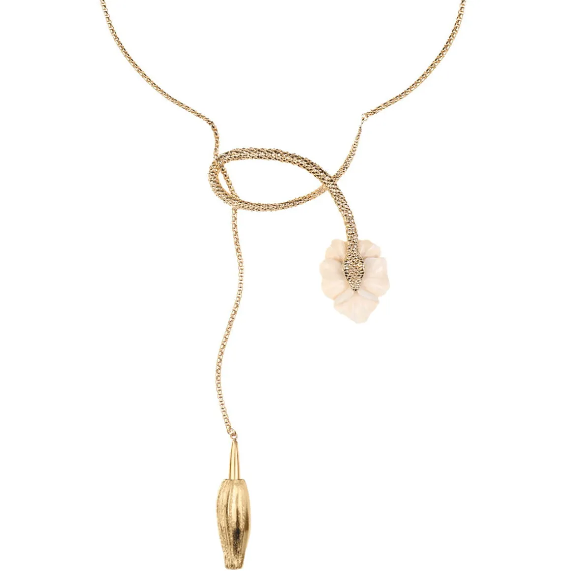 Naszyjnik został wykonany ręcznie. Pozłocony łańcuch o splocie kostki ozdobiony został dwoma jasnymi zawieszkami wyrzeźbionymi przez balijskich mistrzów. Jedna z nich przedstawia hibiskus, symboliczny balijski kwiat, w pełnym rozkwicie, druga przedstawia pąk niedojrzałego jeszcze kwiatu. Dodatkowo kwiat hibiskusa zdobi pozłocona figura węża, z precyzyjnie odwzorowanymi łuskami. Naszyjnik wykończono zawieszką z logo ORSKA, blaszką z wygrawerowanym napisem „Limited Edition” oraz wygodnym zapięciem na karabińczyk. Ogniwa umożliwiają zapięcie naszyjnika na dwóch wysokościach. Naszyjnik z hibiskusem doda lekkości wieczornym stylizacjom, a te codzienne zyskają dzięki niemu odrobinę blasku i fantazji.