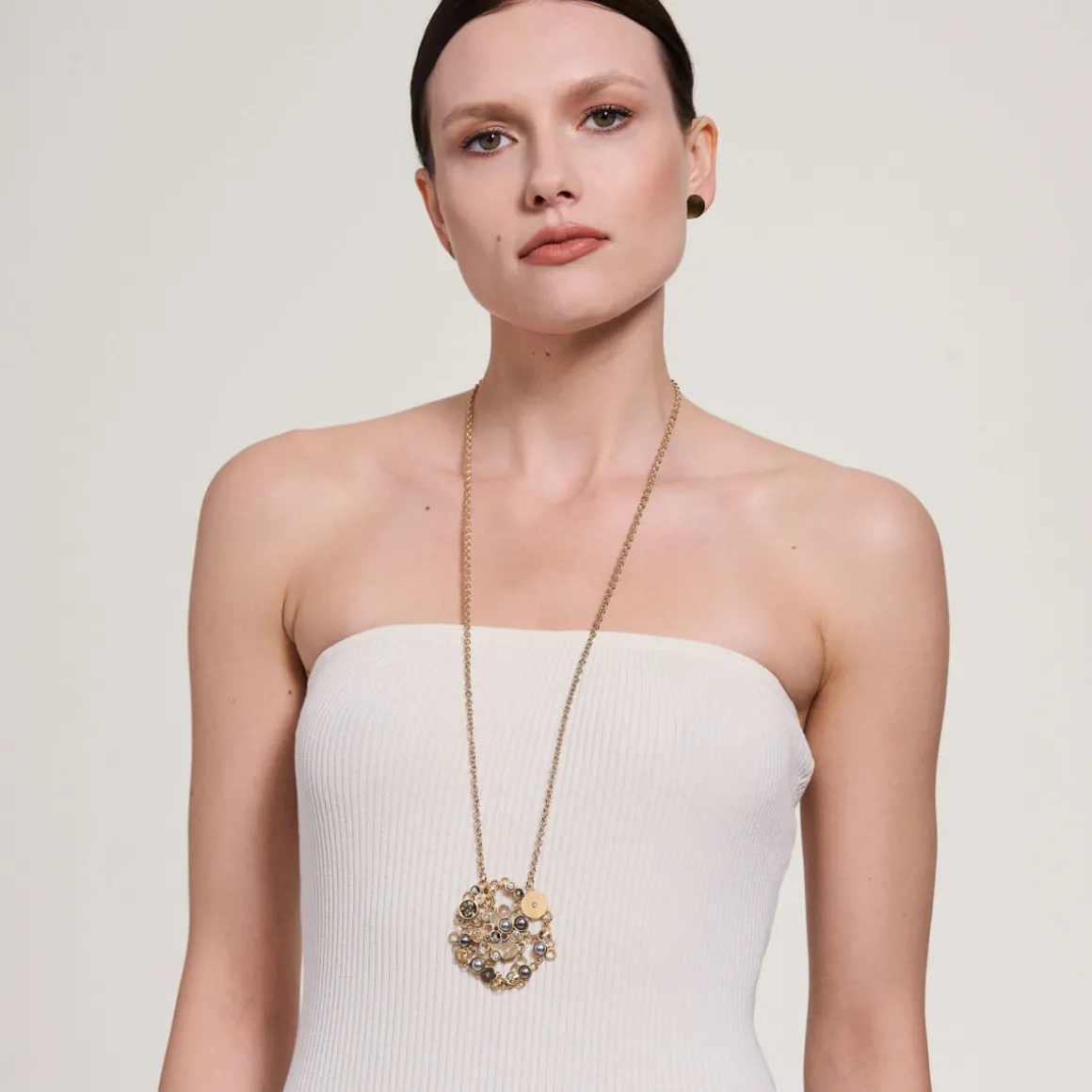 Kolekcja Soda to dyskretny flirt klasyki z nowoczesnością. Tradycyjna elegancja pereł została subtelnie przełamana współczesnymi kryształami, osadzonymi w pozłacanych elementach wykonanych w technologii druku 3D. Delikatny urok ciemnych pereł, rozświetlony kryształami, współgra z ciepłym kolorem metalu. Artystyczny naszyjnik na długim łańcuszku został wykonany ręcznie z pozłacanego mosiądzu. Efektowna biżuteria będzie idealną ozdobą dla wielbicieli nieoczywistych rozwiązań, spragnionych unikalnych doznań estetycznych.