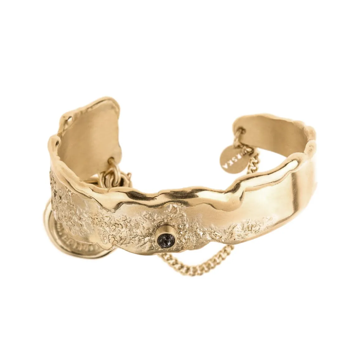 Niepokój o to, co pozostawimy po sobie przyszłym pokoleniom zainspirował ORSKA do opracowania koncepcji reinkarnacji poprzemysłowego plastiku, który został poddany eksperymentalnej obróbce. W efekcie tego procesu powstał syntetyczny kamień, który stanowi serce kolekcji New Stone. Lekka, czarna bryła o tęczowym połysku i fakturze przywodzącej na myśl krystalizację naturalnych minerałów została uformowana przez Weronikę Banaś z przetworzonego plastiku. Efektowna, wąska bransoletka o nieregularnej linii i falistej strukturze opatrzona została pieczęcią „made by Homo Sapiens”, która informuje o pochodzeniu kamienia i przypomina, że nasze dzieła to też nasza odpowiedzialność.