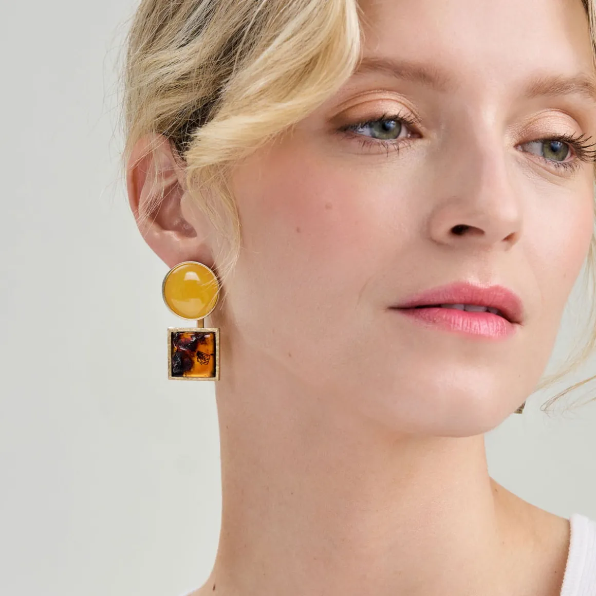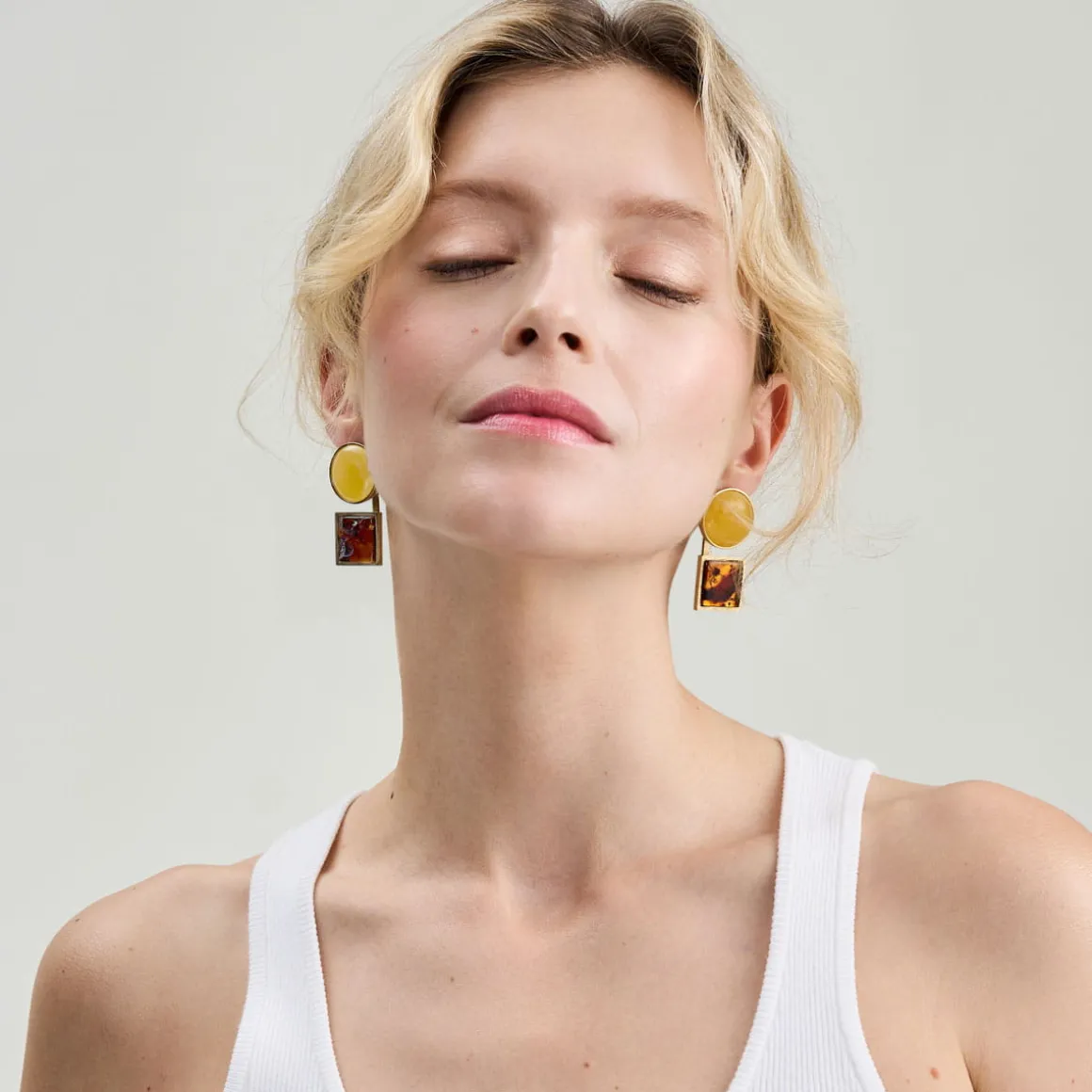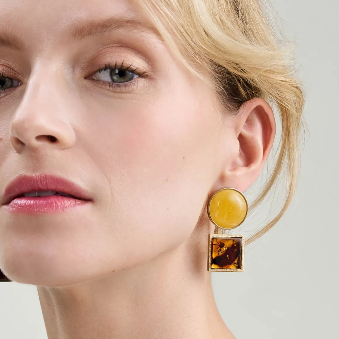 Geometryczne kolczyki z jasnym i ciemnym bursztynem