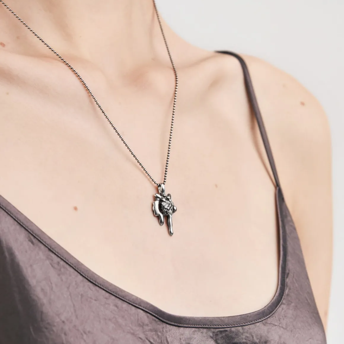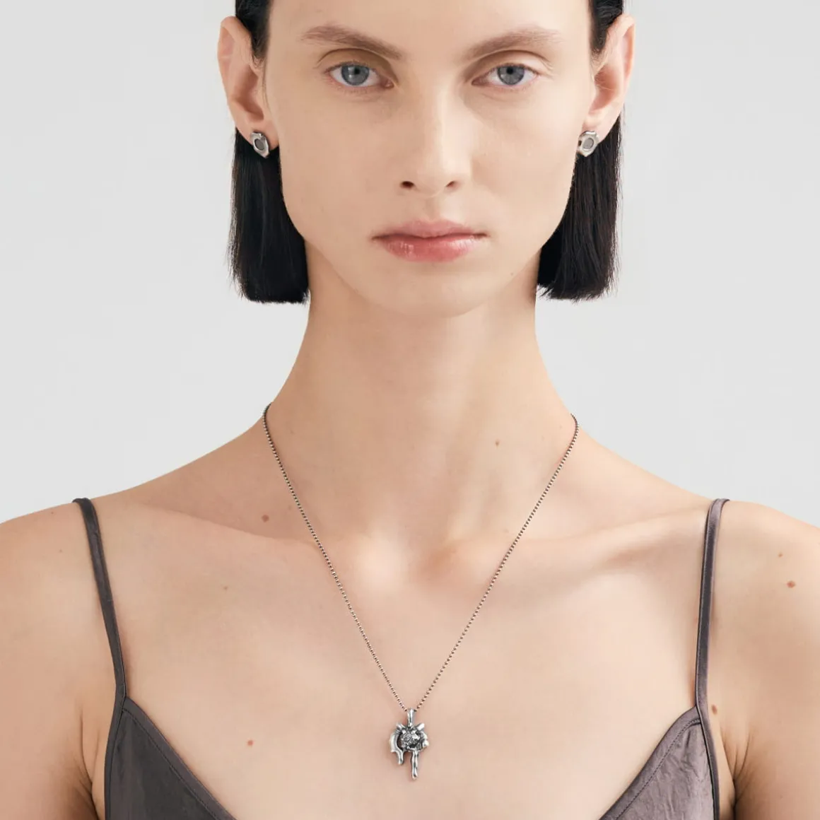 Naszyjnik w kształcie litery V z kolekcji Meteoros został wykonany ze srebra próby 925. Minimalistyczny łańcuszek o kulkowym splocie ozdobiliśmy nieregularną zawieszką z fragmentem meteorytu Campo del Cielo, który wygląda jak cząstka kosmicznej skały. Srebrzysta oprawa miękko otula surową, nieregularną bryłkę, uwypuklając jej nieziemski urok. Całość zapinana jest na karabińczyk, co dodaje biżuterii funkcjonalności i wygody. Kompozycję zamyka logo ORSKA i kilkucentymetrowa przedłużka.