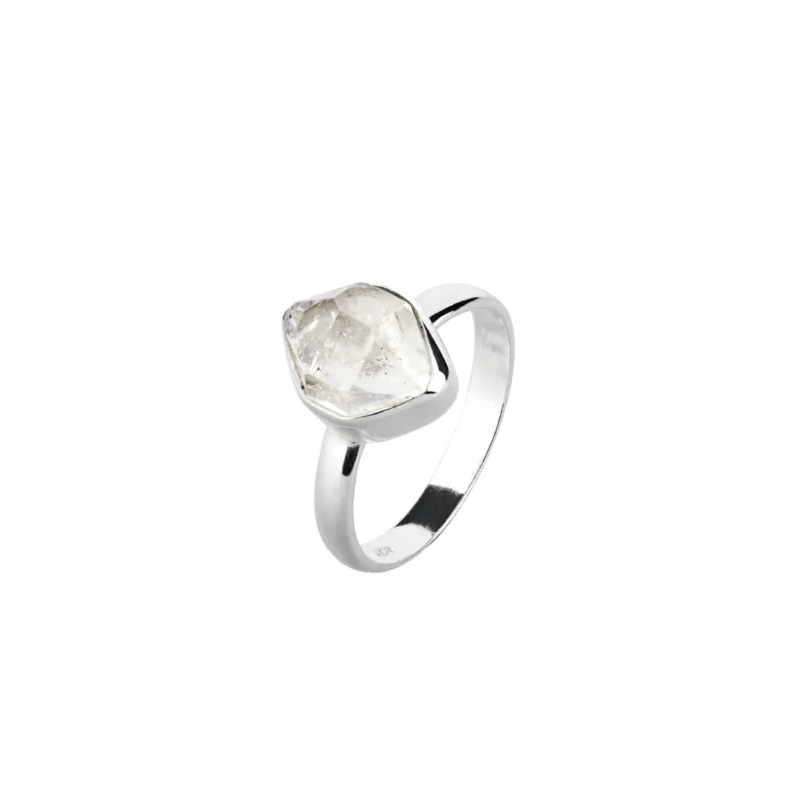 Srebrny pierścionek z kryształem górskim zwanym herkimerem