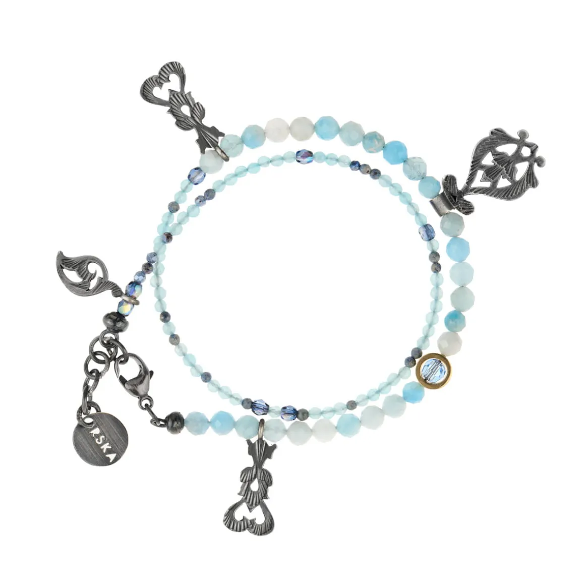 Podwójna bransoletka z kamieni naturalnych z artystycznymi zawieszkami