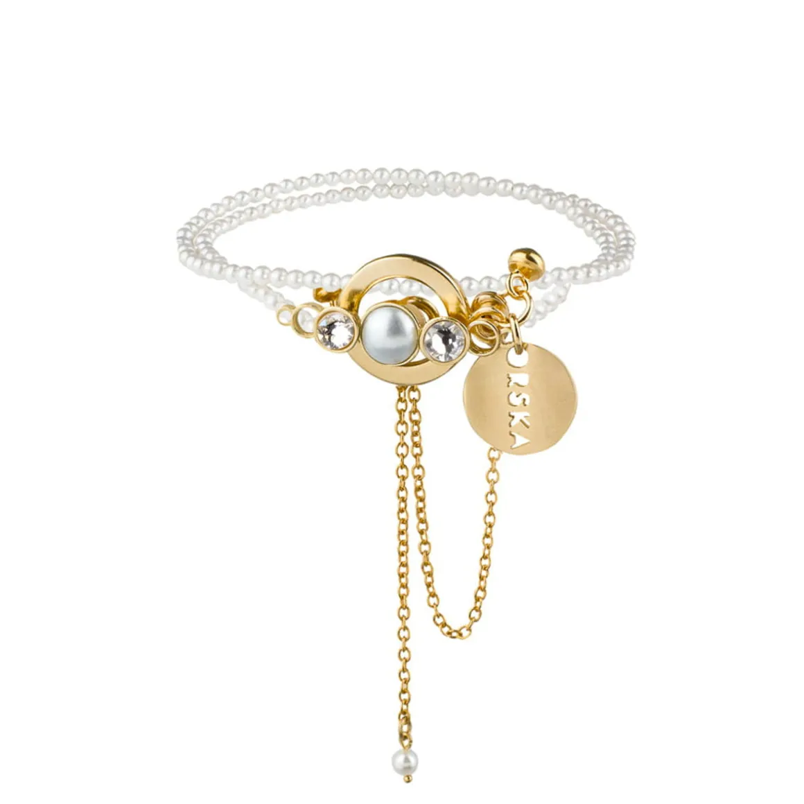 Kolekcja Soda to subtelny flirt klasyki z nowoczesnością. Kremowa biel pereł słodkowodnych wyraźnie kontrastuje z pozłacanym mosiądzem. Artystyczna bransoletka została wykonana ręcznie. Delikatny sznur pereł dwukrotnie oplata nadgarstek. Całość zdobi zapięcie na bogato zdobiony skobelek. Delikatna biżuteria będzie idealną ozdobą dla wielbicieli nieoczywistych rozwiązań, spragnionych unikalnych doznań estetycznych.