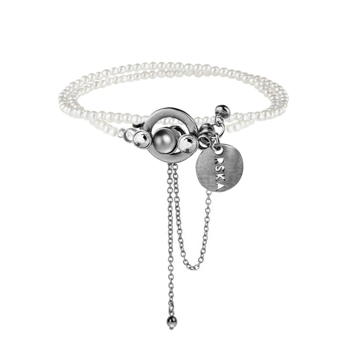 Kolekcja Soda to subtelny flirt klasyki z nowoczesnością. Kremowa biel pereł słodkowodnych wyraźnie kontrastuje z grafitową szarością metalu. Artystyczna bransoletka została wykonana ręcznie. Delikatny sznur pereł dwukrotnie oplata nadgarstek. Całość zdobi zapięcie na bogato zdobiony skobelek. Delikatna biżuteria będzie idealną ozdobą dla wielbicieli nieoczywistych rozwiązań, spragnionych unikalnych doznań estetycznych.