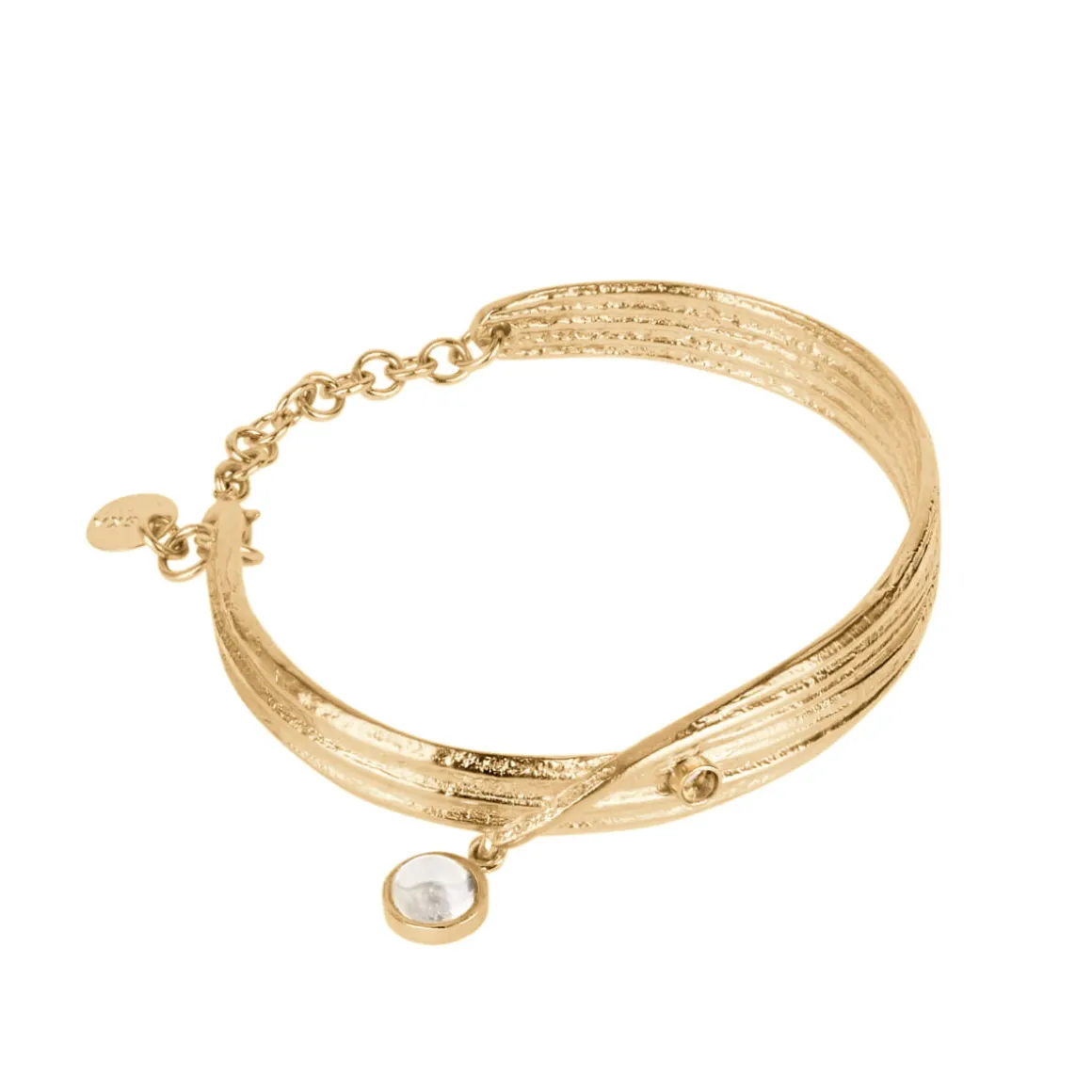 Sztywna bransoletka z pozłacanego mosiądzu z kryształami górskimi