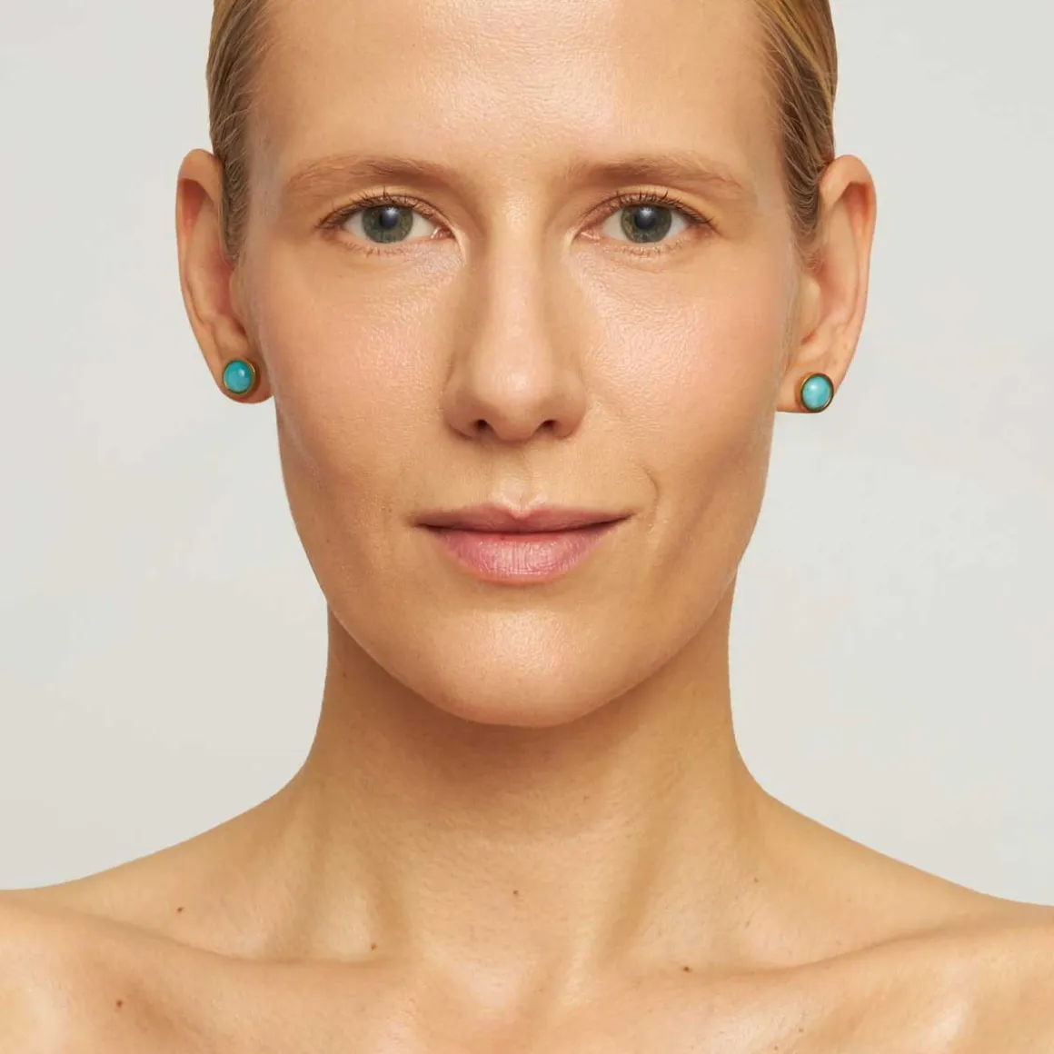 Niewielkie okrągłe amazonity w błękitnym kolorze oprawione zostały w delikatne ramy z pozłacanego mosiądzu tworząc subtelny, ale wyrazisty dodatek. Każdy amazonit jest unikalny – naturalne różnice w odcieniu sprawiają, że każda para kolczyków jest niepowtarzalna. Zapinane na wygodny sztyft kolczyki są lekkie i idealne do noszenia przez cały dzień. Ich niewielki rozmiar czyni je uniwersalnymi, pasują zarówno do casualowych, jak i bardziej eleganckich stylizacji, dodając im odrobinę koloru.