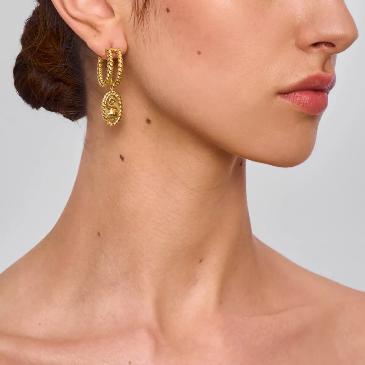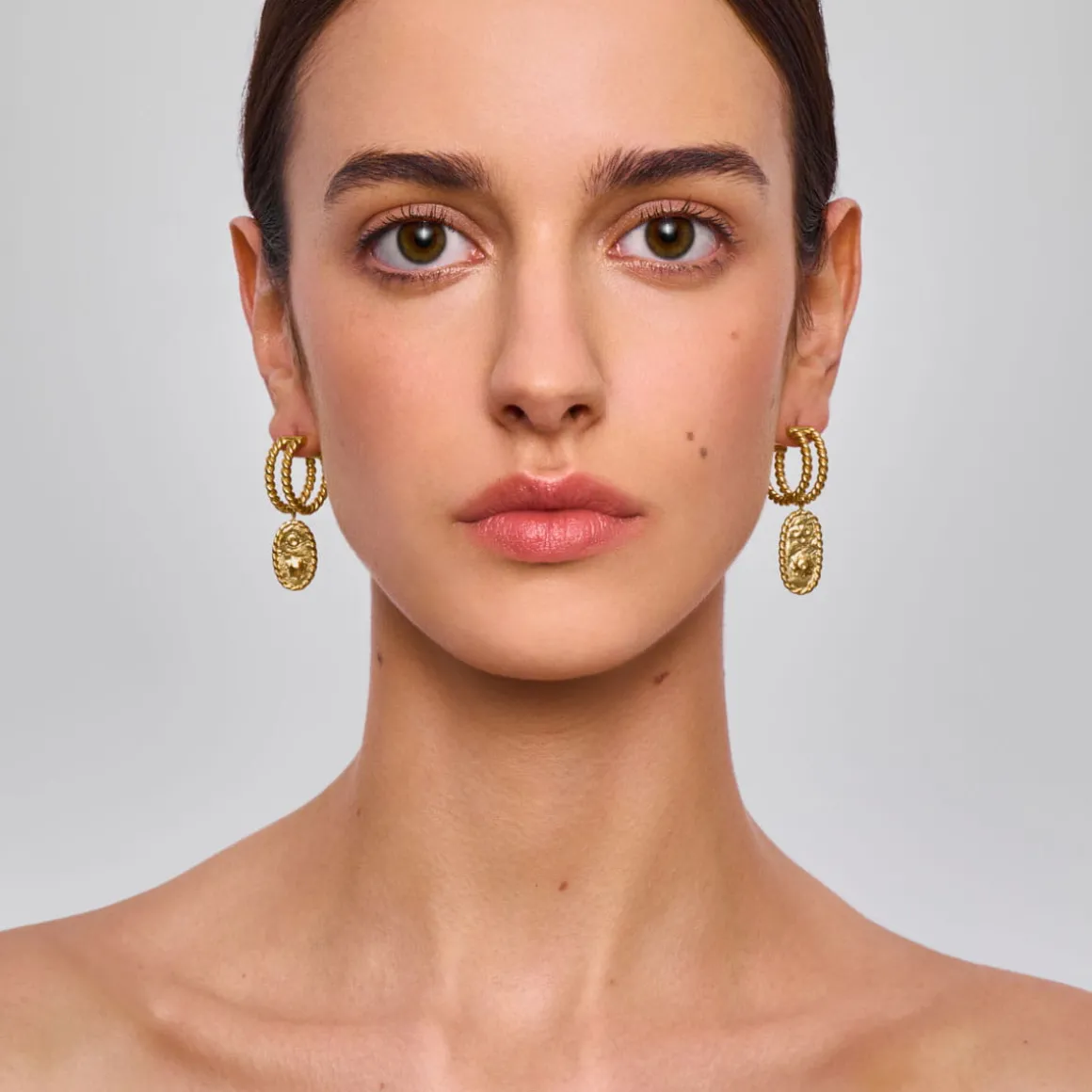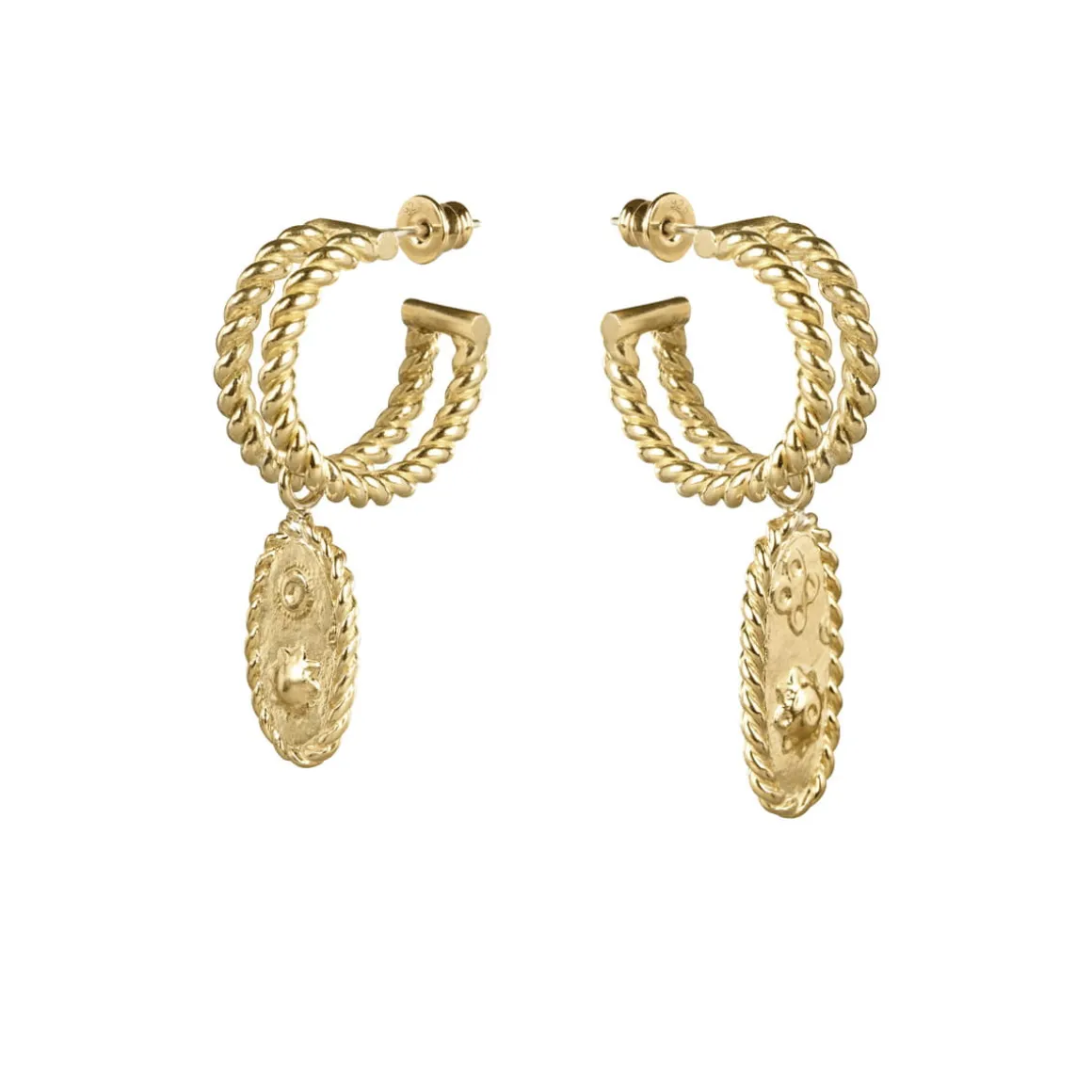 Podwójne, plecione kolczyki koła z ozdobnymi zawieszkami z kolekcji Semios
