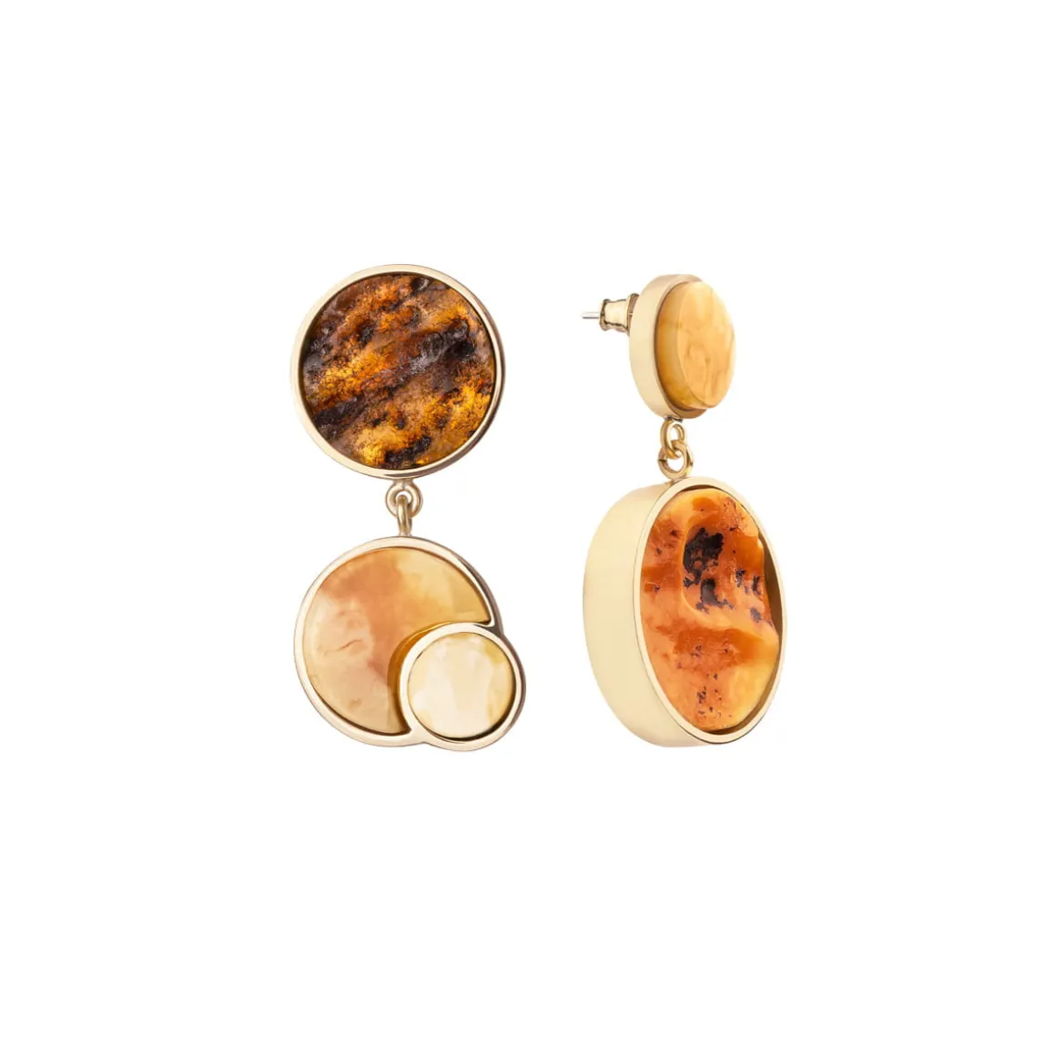 Pozłacane, asymetryczne kolczyki z bursztynem