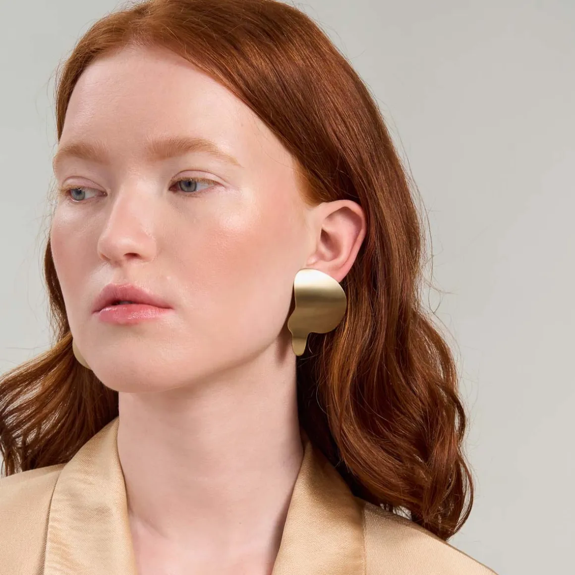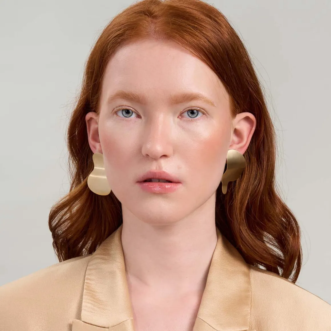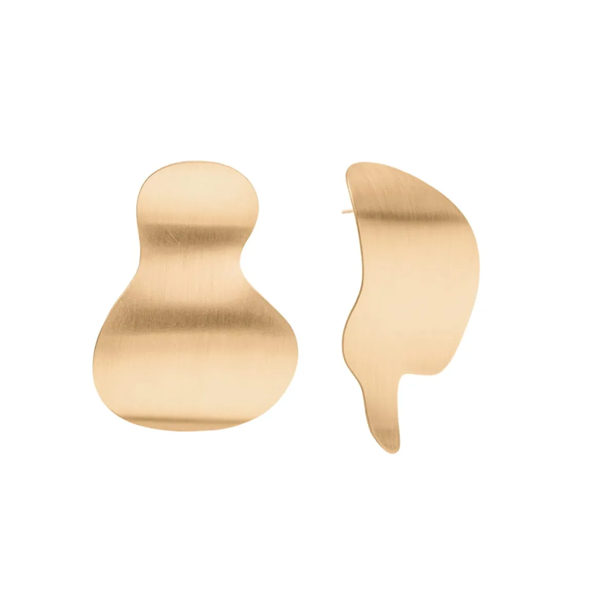 Kolczyki wykonane zostały ręcznie w pracowni ORSKA. Oryginalny design to nie wszystko! Kolczyki są lekkie i wygodne, dobrze się noszą i nie męczą uszu. Miękkie formy ekspresywne połączone zostały w asymetryczną parę, dzięki czemu kolczyki z kolekcji Tache jeszcze bardziej wyróżniają się na tle klasycznej biżuterii. Wykonane z pozłacanego mosiądzu o satynowym wykończeniu pasują niemal do każdej stylizacji i przetrwają próbę czasu. Sztyft i zapięcia kolczyków wykonano ze srebra.