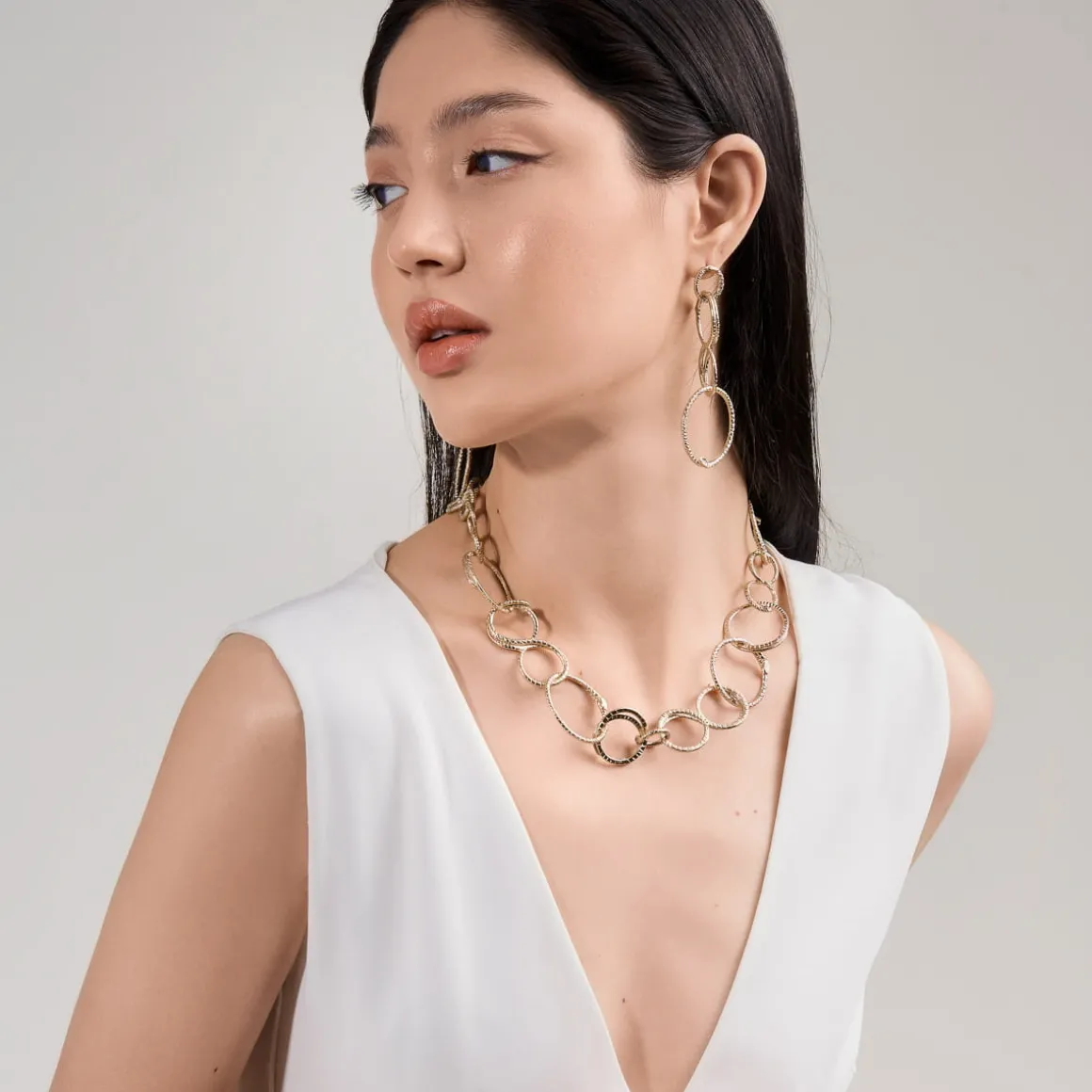 Artystyczna kolia została wykonana ręcznie w poznańskiej pracowni, jednak pomysł na nią zrodził się jeszcze w trakcie podróży Anny Orskiej na Bali. Okrągłe ogniwa o różnej wielkości odlano z mosiądzu, precyzyjnie odwzorowując motyw wężowych łusek. Po połączeniu ogniwa utworzyły krótki łańcuch. Naszyjnik pozłocono, a następnie wykończono zapięciem na artystyczny haczyk z wężowym motywem, który umożliwia wygodną i prostą regulację długości. Kompozycję uzupełnia zawieszka z głową węża oraz podwieszone logo ORSKA. Choć naszyjnik doskonale prezentuje się solo, lubi też towarzystwo pozostałych wzorów z kolekcji biżuterii Kembali – wiszące kolczyki z wężowych ogniw lub podwójny, pozłacany pierścionek utworzą wraz z nim duet, obok którego nie da się przejść obojętnie.