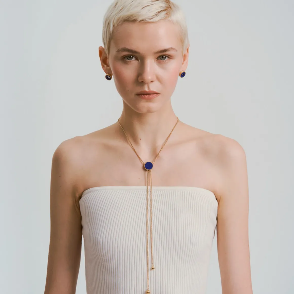 Naszyjnik typu krawat (znany również jako lariat) to dodatek, który możesz stylizować na wiele różnych sposobów. Naszyjnik świetnie współgra z bluzkami, sukienkami lub kombinezonami z głębokim dekoltem w kształcie litery V. Podkreśla linię dekoltu, dodając elegancji. Możesz też nosić go na gładki golf lub bluzkę z wysokim kołnierzem – długi łańcuszek optycznie wydłuży sylwetkę. Sprawdzi się także jako dodatek do wieczorowych sukni z odkrytymi plecami – możesz założyć go tak, aby jego część spływała wzdłuż pleców. Naszyjnik krawatkę możesz łączyć z innymi krótszymi naszyjnikami, tworząc ciekawą warstwową kompozycję. Duet doskonały utworzy na przykład z krótkim naszyjnikiem z koralami lapis lazuli lub efektowną kolią z kolekcji Orini.