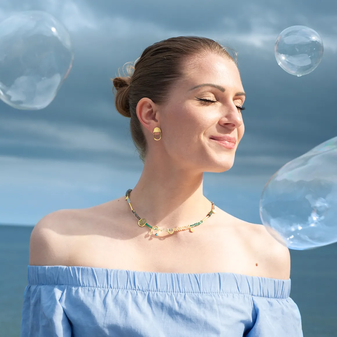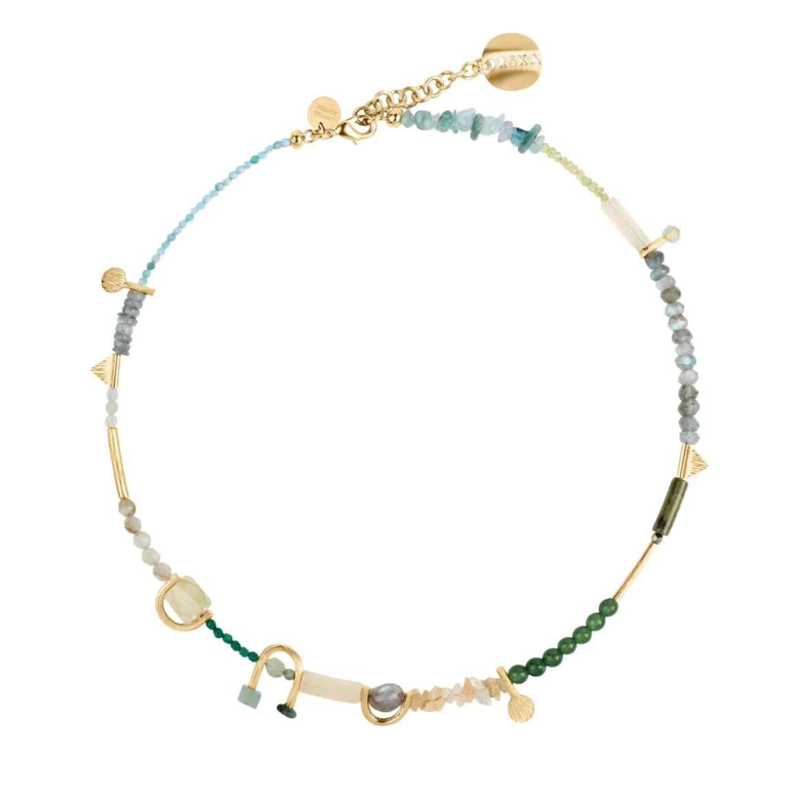 W naszyjniku zostały wykorzystane naturalne kamienie i każdy z nich jest wyjątkowy – naturalne różnice w strukturze i barwie kamieni czynią każdą sztukę unikatowym dziełem natury, podkreślając indywidualizm i niepowtarzalny charakter biżuterii z tej kolekcji.