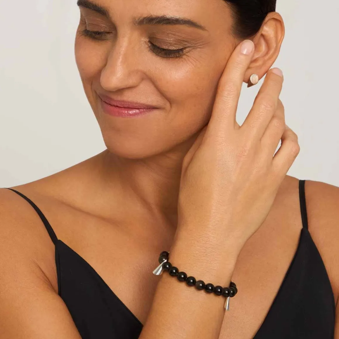 Obsydian był używany przez człowieka od tysięcy lat – do wyrobu narzędzi, grotów strzał i ostrzy, ponieważ można go łupać na niezwykle ostre krawędzie. Majowie i Aztekowie wykorzystywali obsydian również jako zwierciadła i w rytuałach duchowych. Po dziś dzień uważany jest za kamień ochronny – wierzy się, że pochłania negatywną energię, wspiera samoświadomość i oczyszcza umysł z niepotrzebnych myśli. Często kojarzony jest z odwagą, prawdą i transformacją – wspiera tych, którzy przechodzą przez zmiany i potrzebują wewnętrznej siły. Bransoletka z obsydianu złocistego będzie idealnym prezentem dla osób szukających odwagi do podejmowania trudnych decyzji. To także doskonały wybór dla mężczyzn – surowa, minimalistyczna forma i ciemny kolor kamienia sprawiają, że bransoletka ma uniwersalny, ponadczasowy charakter. Noś ją samodzielnie lub zestawiaj z innymi srebrnymi elementami z kolekcji Guatemala – kolczykami-stożkami i naszyjnikiem lub kolią z czarnym jadeitем. To biżuteria, która nie tylko zdobi, ale także przypomina o drzemiącej w każdym z nas sile do pokonywania wyzwań dnia codziennego.