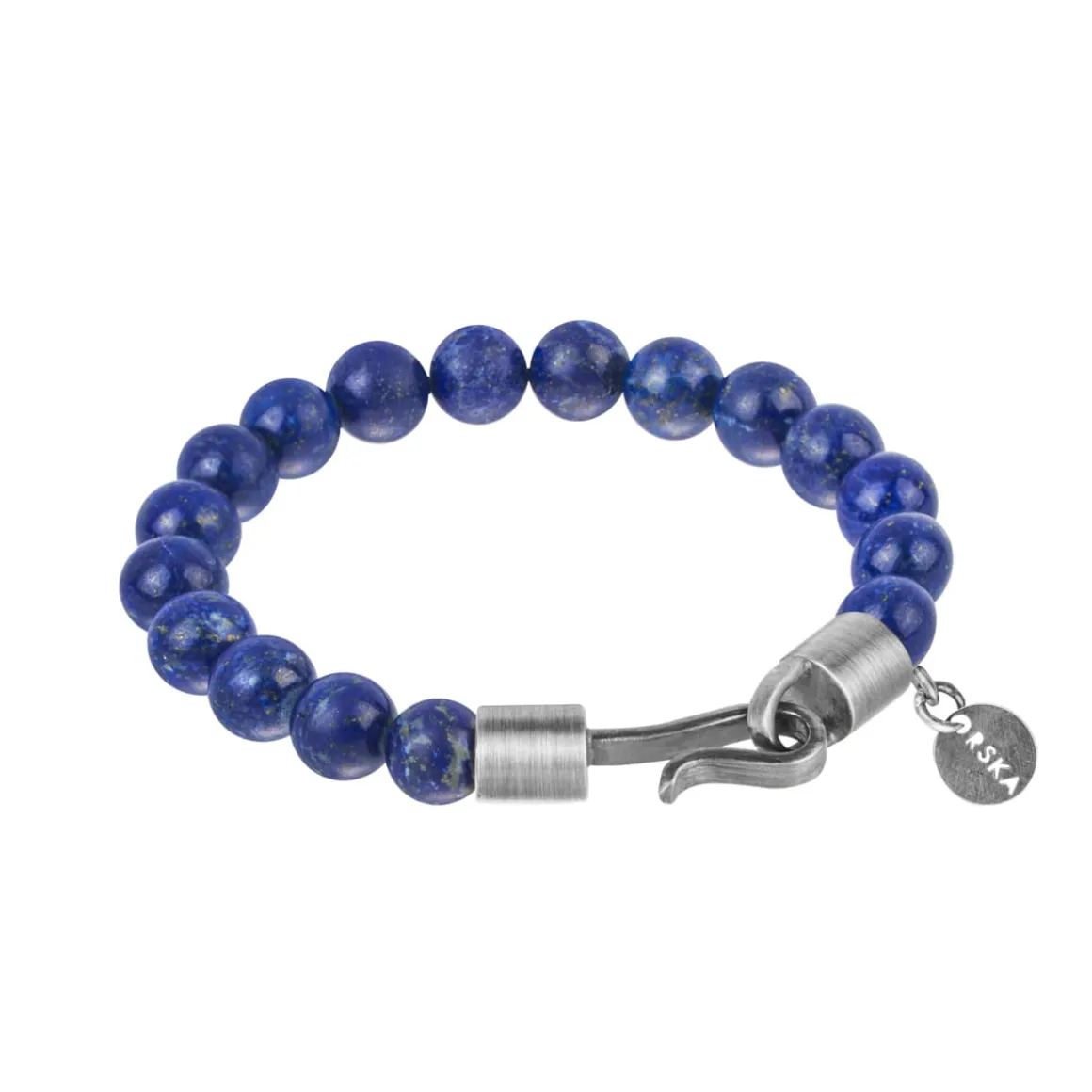 Bransoletka Orini została wykonana ręcznie z matowych, głęboko niebieskich korali lapis lazuli, które współgrają z okuciem z oksydowanego srebra w grafitowym kolorze. Delikatne zapięcie o finezyjnym kształcie ozdobiliśmy niewielkim logo ORSKA. Zapięcie jest także wygodne i praktyczne – ułatwia zapinanie bransoletki jedną ręką. Bransoletka dostępna jest także w złotym kolorze – możesz nosić je razem tworząc ciekawsze, bardziej urozmaicone stylizacje. Bransoletka odnajdzie się w towarzystwie srebrnej obrączki z oczkiem oraz oryginalnego pinu z tej samej kolekcji, tworząc charakterną kompozycję na co dzień i na wyjątkowe okazje.