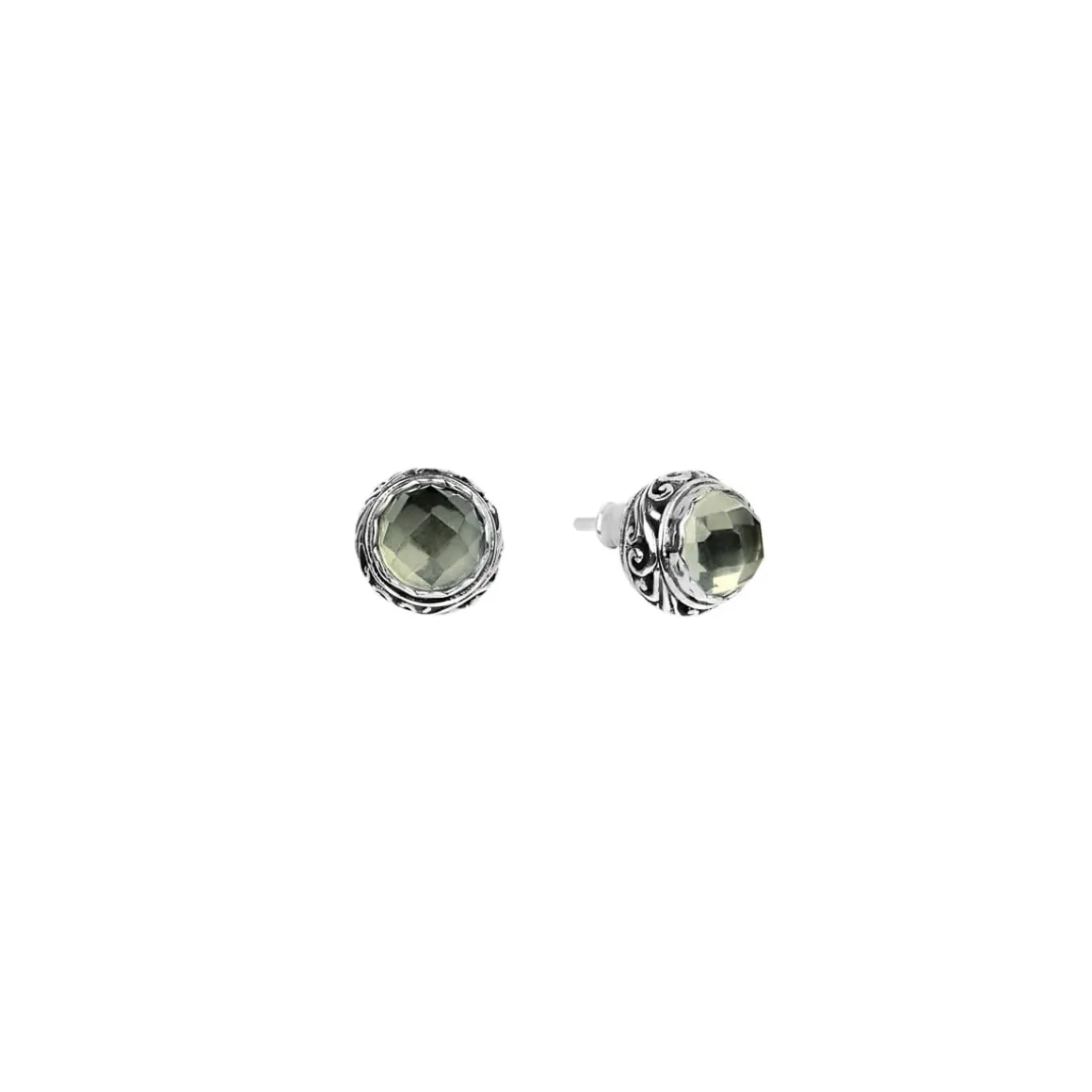 Delikatne kolczyki na sztyfcie z kolekcji Duo zostały wykonane ze srebra próby 925. Kolczyki mają klasyczną, okrągłą formę, a ich ozdobą jest fasetowany, zielony ametyst. Kamień ten wyróżnia się nietuzinkową barwą, która idealnie współgra z chłodnym odcieniem lśniącego metalu. Fasetowany ametyst jest osadzony w ażurowej koronie, która podkreśla dekoracyjność kamienia.