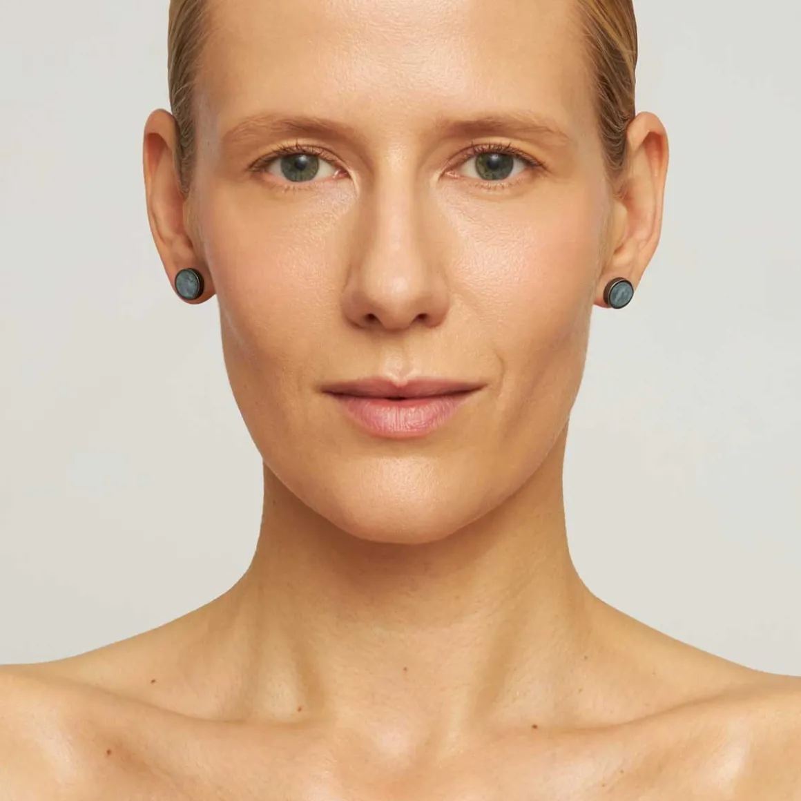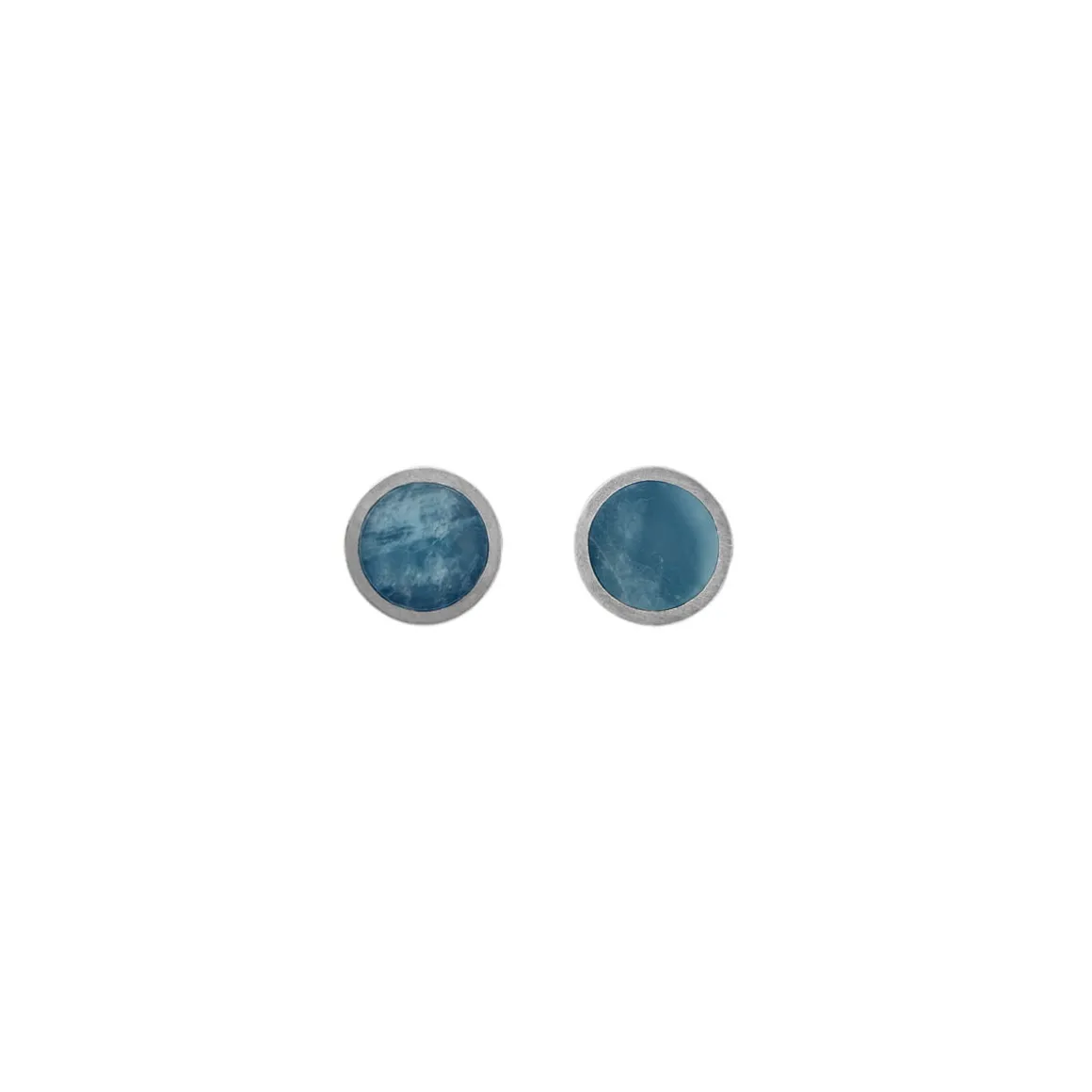 Kolczyki z kolekcji Maroko zostały wykonane ręcznie z oksydowanego srebra. W centrum okrągłych ram umieszczono gładki, okrągły akwamaryn w błękitnym odcieniu. Grafitowa oprawa ze srebra kontrastuje z jasnym odcieniem kamienia, podkreślając inkluzje widoczne wewnątrz każdej bryłki. Kolczyki zapinane są na wygodny sztyft, dzięki czemu są lekkie i idealne do noszenia przez cały dzień. Ich niewielki rozmiar sprawia, że są uniwersalne – pasują zarówno do casualowych, jak i bardziej eleganckich stylizacji.