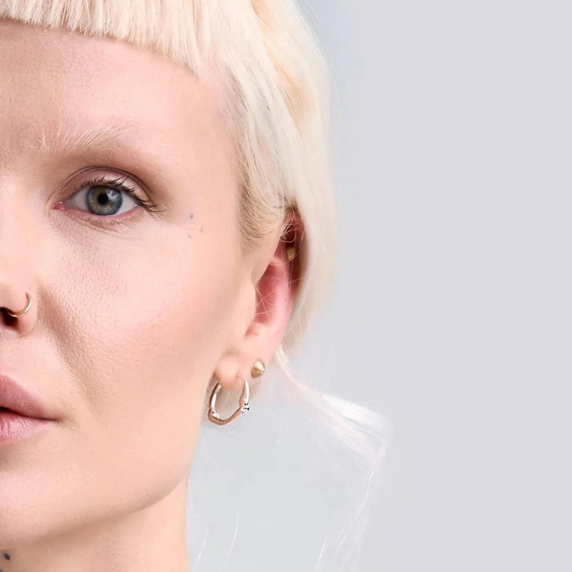 Kolczyki mają formę otwartych niewielkich kół z zapięciem na sztyft. Jasne srebro, z którego zostały wykonane, subtelnie rozświetli twarz. Kolczyki o nieregularnej powierzchni łączą w sobie klasykę, z nowoczesnością. Kolczyki są asymetryczne, a ich nieregularna faktura, przypominająca krople płynnego metalu, nawiązuje do wody. Bo to właśnie morza i oceany często stają się ostatecznym miejscem bytności plastikowych odpadów. Kolczyki w lśniącej ozdobnej formie, kryją w sobie codzienną dawkę inspiracji do dbałości o piękno natury.