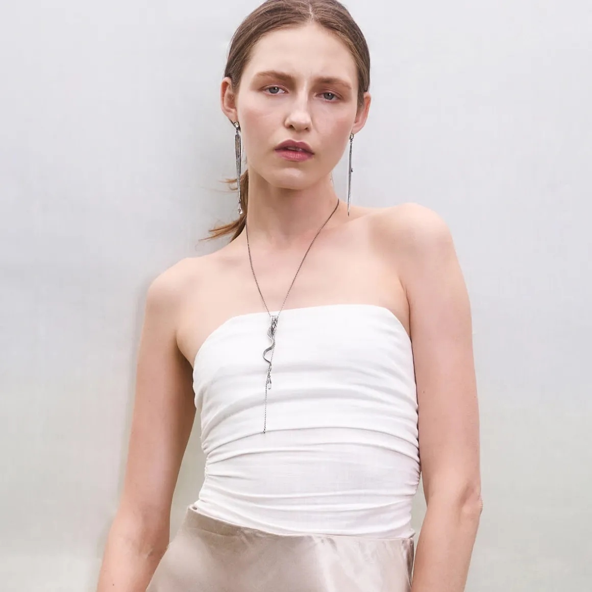 Długi srebrny naszyjnik z kryształem górskim z kolekcji Prato