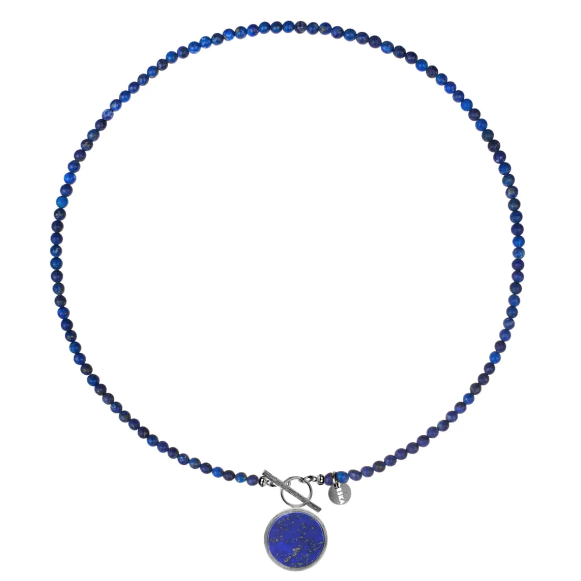 Niebieski naszyjnik z korali lapis lazuli i oksydowanego srebra