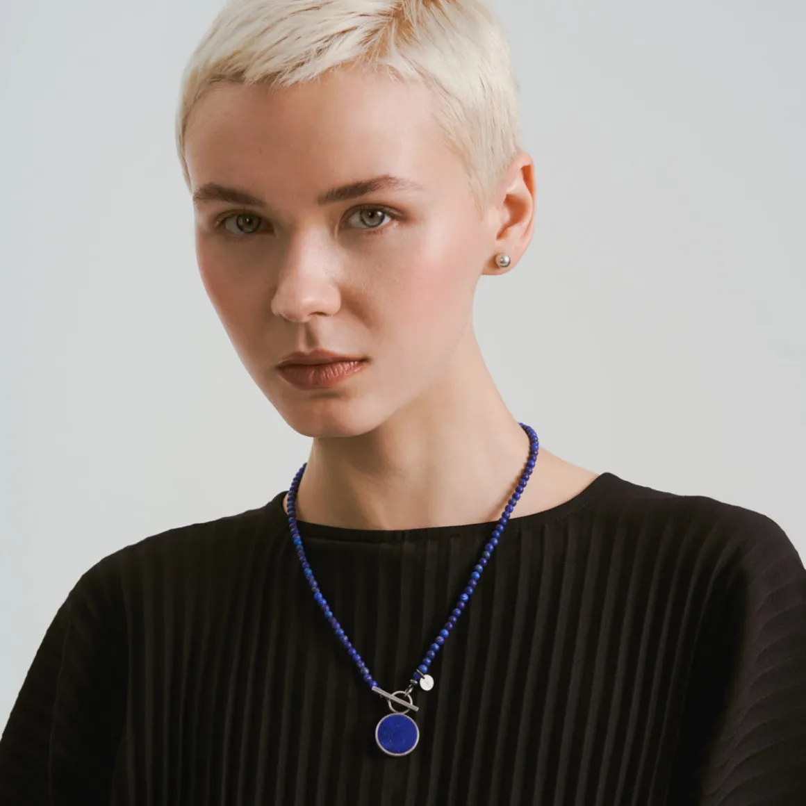 Lapis lazuli, obecny w tym naszyjniku, od tysiącleci inspiruje jako symbol mądrości, duchowej harmonii i wewnętrznej siły. Ceniony przez starożytnych Egipcjan oraz w tradycjach wschodnich kultur, jest kamieniem przypominającym o akceptacji zmian i wewnętrznej harmonii. Więcej o historii i symbolice lapis lazuli przeczytasz na naszym blogu. Elegancki naszyjnik z lapis lazuli możesz zestawić z przyciągającymi spojrzenia asymetrycznymi kolczykami z kolekcji Orini lub uniwersalnymi kolczykami na sztyft. Biżuteria z lapis lazuli to subtelne połączenie estetyki i głębokiej symboliki, doskonałe na co dzień i na wyjątkowe okazje.