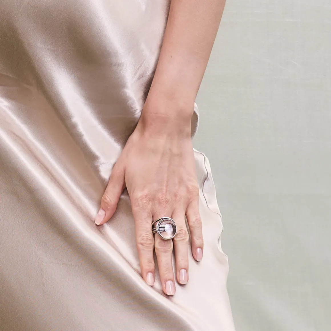 Srebrny pierścionek z okazałym kryształem górskim