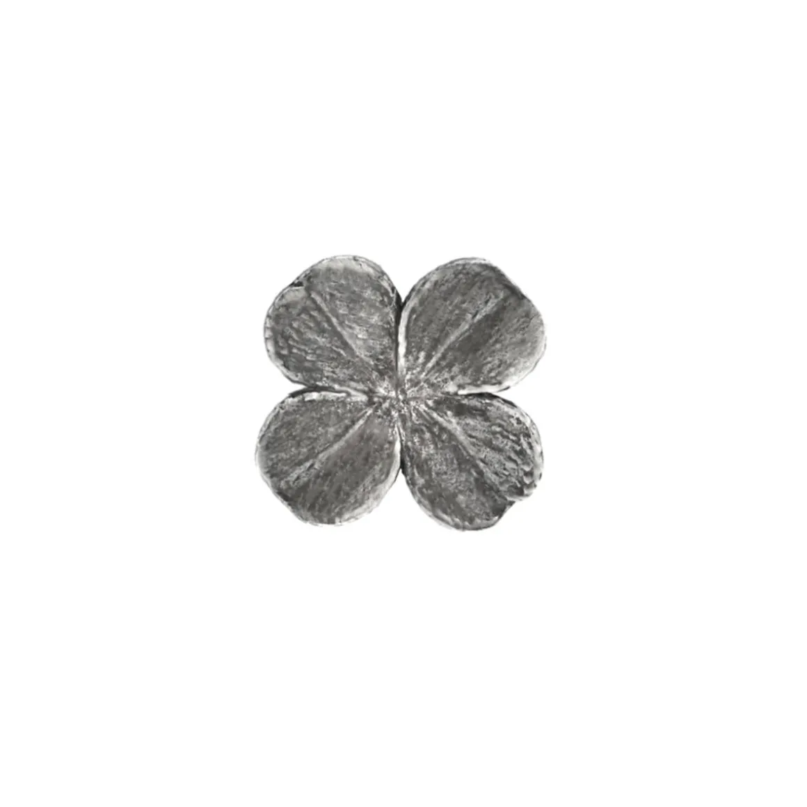 Subtelny pin w formie czterolistnej koniczynki został wykonany ręcznie ze srebra, a następnie oksydowany, co nadało mu grafitowy kolor. Każdy listek koniczyny niesie inne dobrodziejstwo – wiarę, nadzieję, miłość i szczęście. Z tego powodu delikatna broszka będzie idealnym podarunkiem dla życzliwej osoby. Uniwersalny design doskonale uzupełni każdą stylizację, świetnie sprawdzi się także jako ozdoba męskiej marynarki.