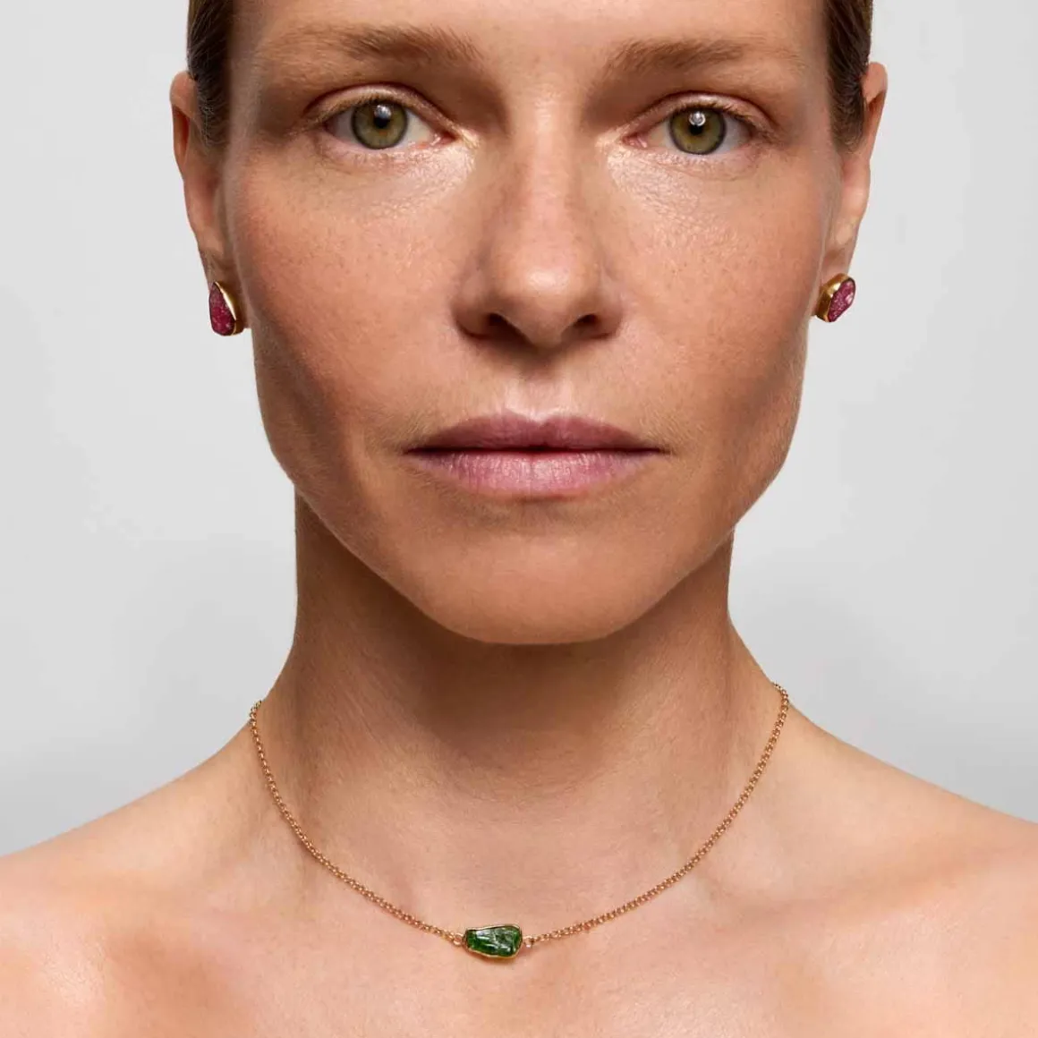 Żadna zorza polarna nie wygląda tak samo – podobnie każdy turmalin z kolekcji Aurora jest niepowtarzalny, pełen inkluzji, naturalnych pęknięć i świetlistych refleksów. Surowe kamienie zachowały swój pierwotny kształt, a ich oprawy zostały indywidualnie dopasowane, by wydobyć to, co w nich najpiękniejsze. W tej różnorodności tkwi siła kolekcji. Obok turmalinów pojawiają się także łupane akwamaryny, przejrzyste herkimery oraz szerlity, czyli czarne turmaliny, które wnoszą do kolekcji kontrast i głębię. Aurora to biżuteria wymykająca się schematom – dzika, autentyczna i tak nieokiełznana jak sama natura, która stała się jej inspiracją.