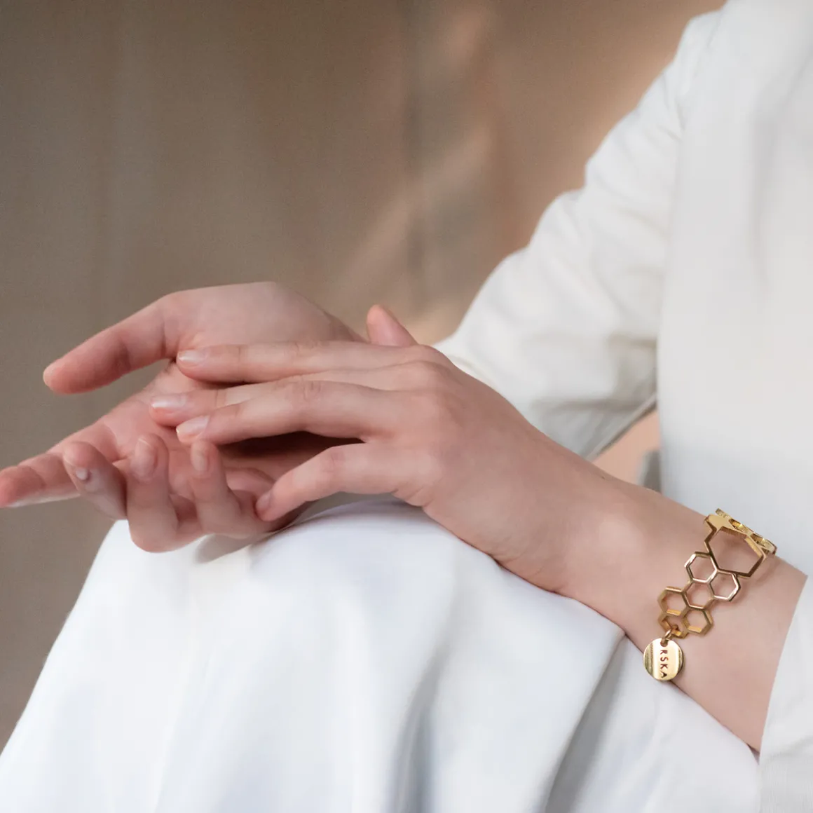 Sztywna, ręcznie wykonana bransoletka z kolekcji Apis została zainspirowana niestrudzoną pracą pszczół i ich perfekcyjnymi dziełami. Te pożyteczne owady stojące na straży naszego ekosystemu to jednocześnie wybitni inżynierowie, których precyzji niełatwo dorównać. ORSKA podjęła wyzwanie, projektując ażurowe elementy inspirowane plastrami miodu. Subtelna bransoletka o heksagonalnym wzorze wyróżnia się płynnie zmieniającą się fakturą bransoletki: przechodzącą od powierzchni satynowej w wysoki połysk i ponownie w satynę. Dzięki minimalistycznemu designowi bransoletka doskonale komponuje się z eleganckimi stylizacjami.