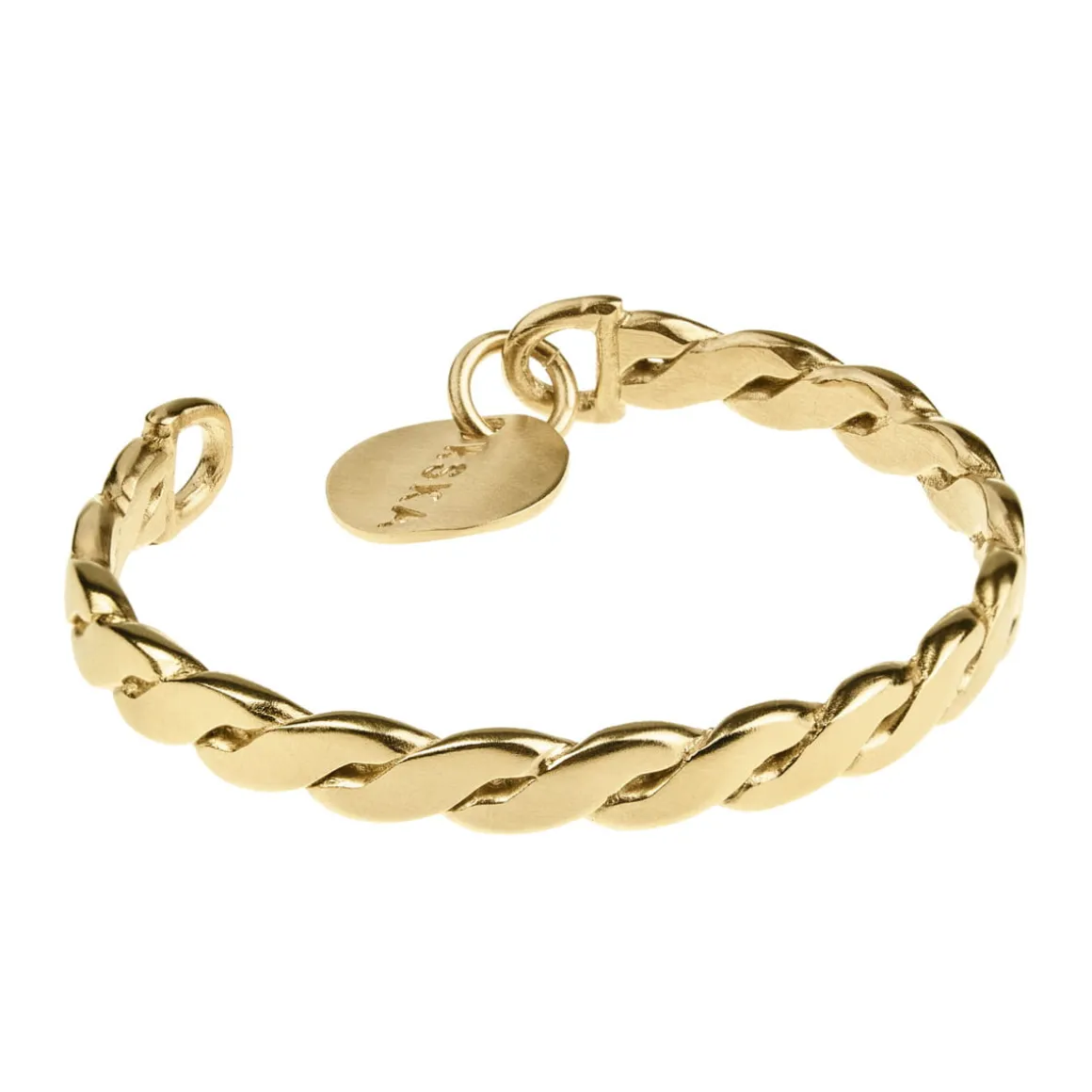 Wykonana z pozłacanego mosiądzu bransoletka, została zaprojektowana z myślą o subtelnych detalach. Jej powierzchnię zdobi spiralny wzór przypominający spleciony warkocz. Do zakończenia bransoletki przytwierdzone zostało ozdobne logo ORSKA. Klasyczna forma i staranne wykończenie czynią z niej ponadczasowy dodatek, który sprawdzi się w wielu zestawieniach. Bransoletki ORSKA są dostępne w rozmiarach odpowiednich dla nadgarstków od 14 cm do 23 cm. Na naszej stronie internetowej znajdziesz wskazówki, jak wybrać właściwy rozmiar bransoletki.