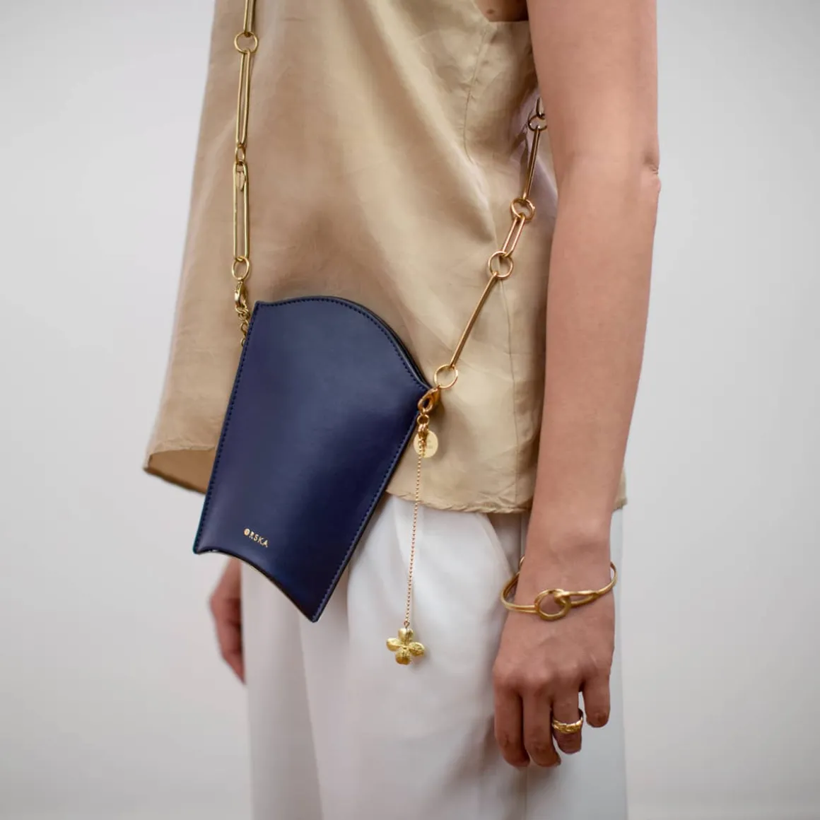 Limitowana kolekcja torebek Vivo została stworzona do personalizacji. Każda z nich posiada elementy wymienne, które pozwalają na skonfigurowanie torebki zgodnie z własnym gustem i potrzebami. Biżuteria artystyczna, jako domena marki ORSKA, musiała się znaleźć wśród nich. Złoty breloczek z koniczynką inspiracją nawiązuje do natury, która przyświeca całej kolekcji. Złota zawieszka na łańcuszku, została zaprojektowana aby Twoja wegańska torebka z kolekcji VIVO nabrała indywidualnego charakteru. Drobna roślina to symbol szczęścia, który może towarzyszyć na co dzień zarówno Twojej torebce jak i biżuterii.